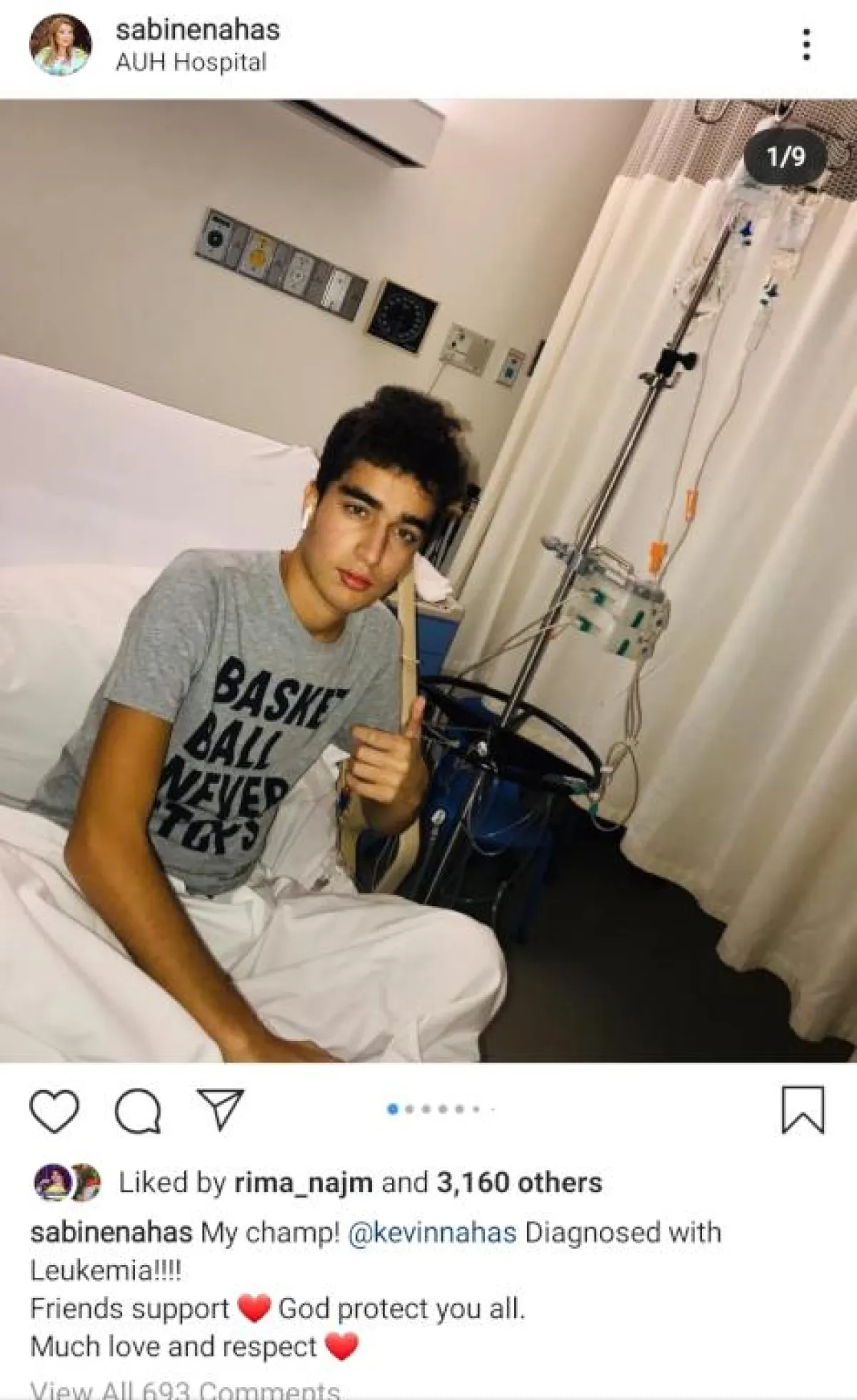 وعن كيفيّة اكتشاف المرض قالت "العدالة الإلهيّة أرادت أن نكتشف المرض باكراً، أصيب كيفن بأنفلونزا حادة، وسقط بين يدي في المنزل، وكانت هذه إشارة، أجرينا الفحوصات وتبيّن أنّه مصاب باللوكيميا".