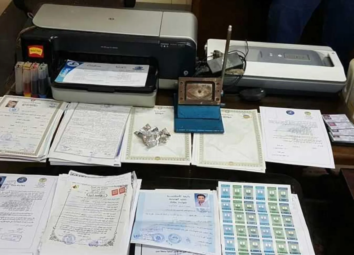 وأفادت تحريات ومعلومات فرع الإدارة العامة لمباحث الأموال العامة بمنطقة القناة وسيناء، قيام شخصين (تاجر وزوجته مالكة مكتب استيراد وتصدير) بممارسة نشاط إجرامي واسع النطاق في مجال تزوير المحررات الرسمية المنسوب صدورها للعديد من الجهات الحكومية وترويجها على راغبي الحصول عليها ممن لديهم موانع قانونية تحول دون حصولهم عليها بالطرق المشروعة مقابل الحصول على مبالغ مالية، متخذين من مسكنهما المشار إليه وكراً لممارسة نشاطهما الإجرامي.