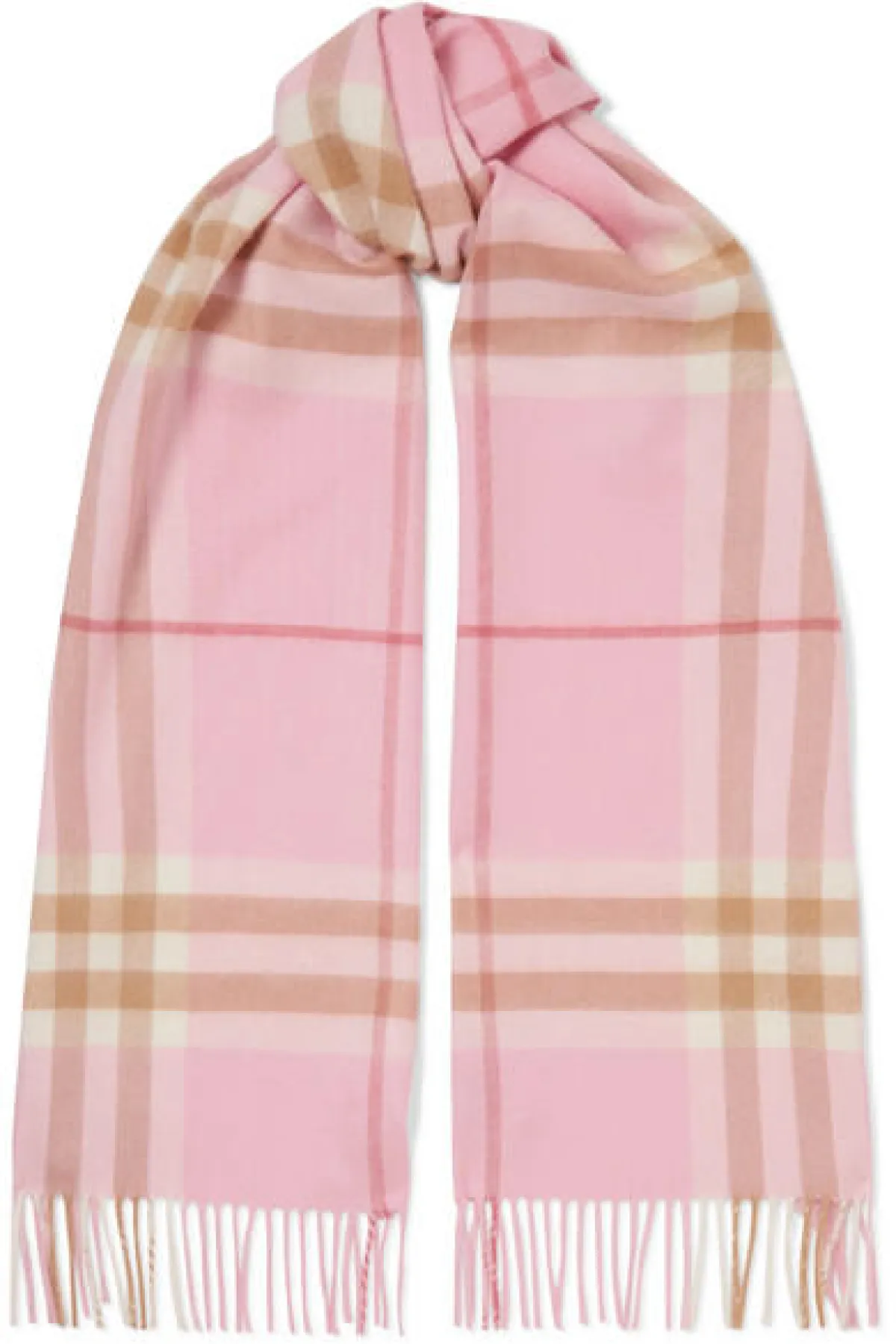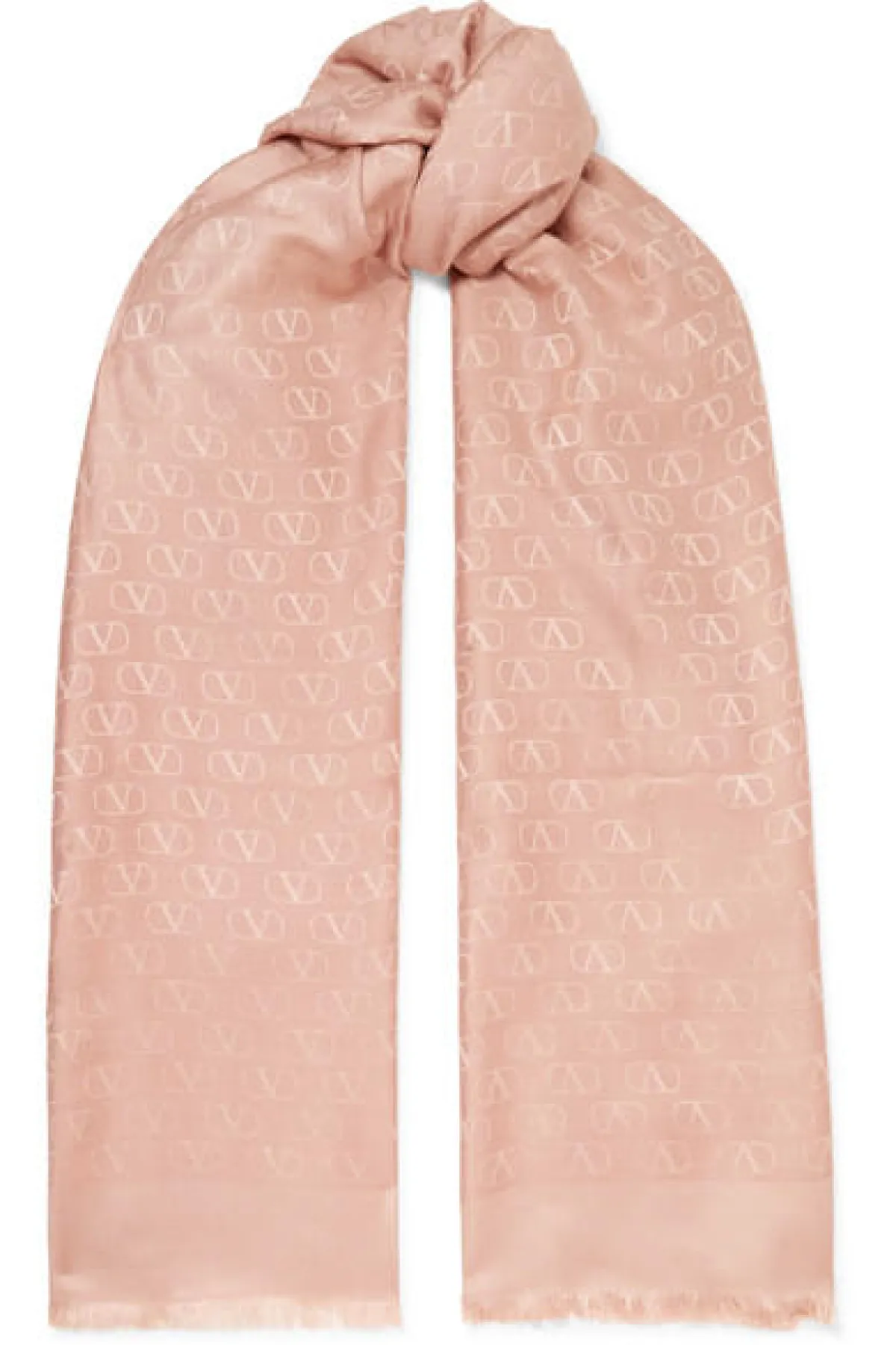ولذا برزت السكارفات باللون الزهري بشكل كبير في مجموعات العديد من الدور العالمية، حيث لفت نظرنا سكارف من Valentino جاء باللون الزهري الفاتح مع نقشات بيضاء ناعمة للحرف الأول من اسم Valentino. أما Burberry فقد قدمت سكارف تداخلت فيه ألوان البني والأبيض مع الزهري بشكل أنيق ولافت