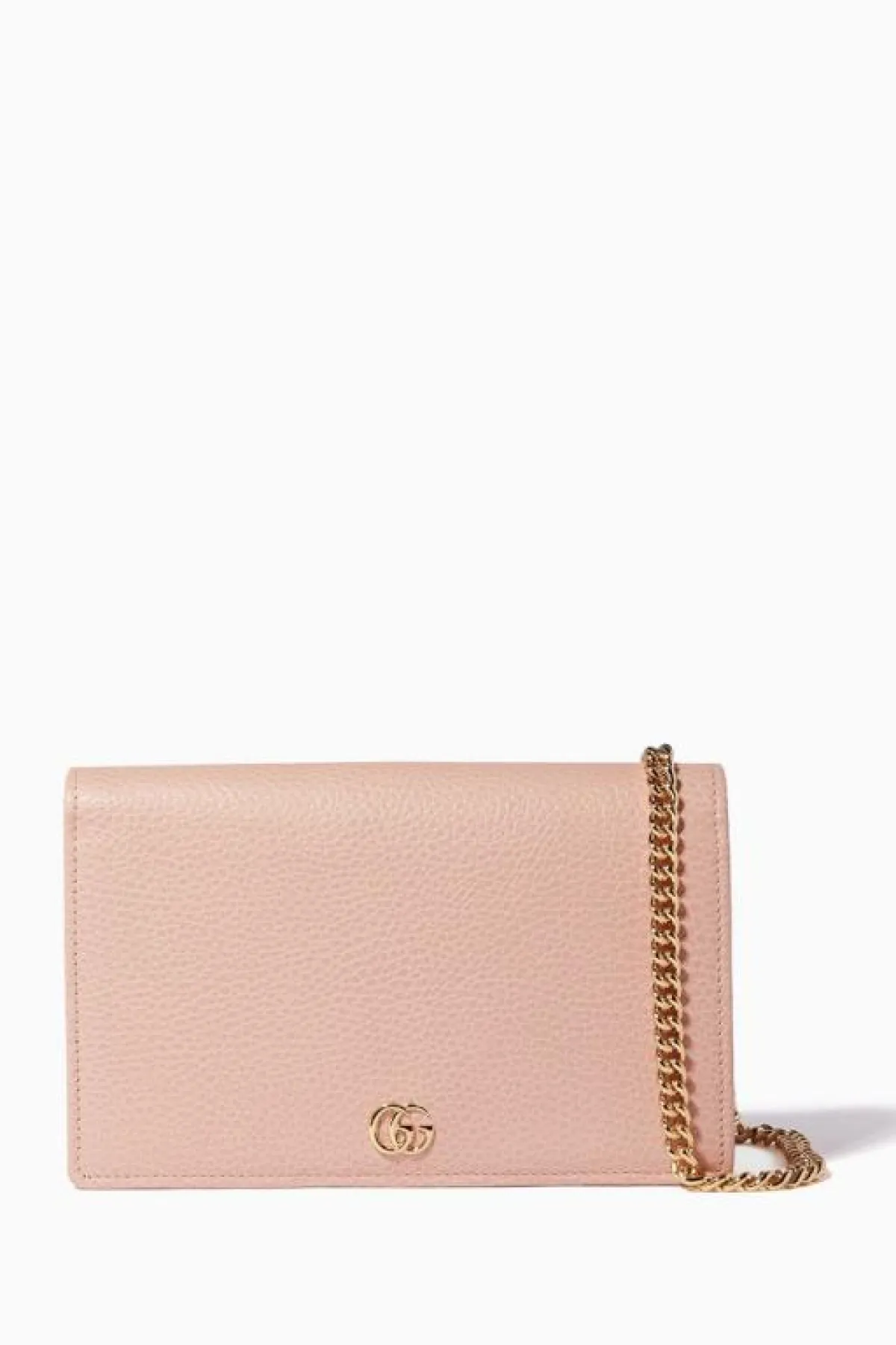 ولأننا أُعجبنا بالحقائب الزهرية الرسمية ننصحك بتجربة هذه الحقيبة من Gucci التي جاءت من الجلد مع حزام باللون الذهبي الأنيق، أو اختاري الحقيبة من Miu Miu اذا كنت تميلين للون الفضي، حيث تميزت بشعار الماركة المرصع بحبّات اللؤلؤ الأنيقة.