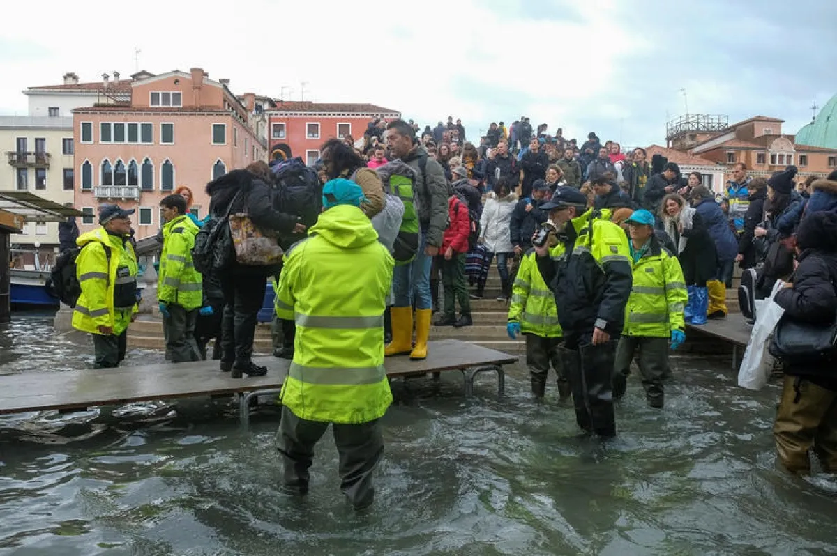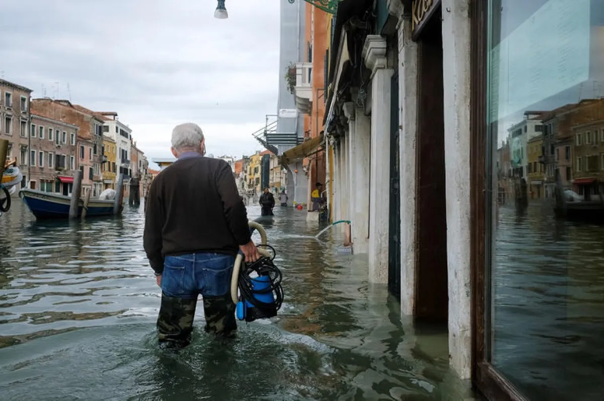 وأصيبت البندقية بحالة من الشلل التام بعد أن وصل منسوب المياه فيها إلى ذروته عند 1.27 متر، الثلاثاء. والبندقية الملقبة بـ«المدينة العائمة» لا يتجاوز عدد سكانها 50 ألفاً، لكنها تستقبل كل عام 36 مليون سائح. وتسبب ارتفاع مستوى المياه، الثلاثاء، مع الرياح الشديدة والأمطار بإغراق قرابة 80% من المدينة، وفق مسؤولين. وكثيرون، ومن بينهم رئيس بلدية البندقية، ألقوا باللائمة في الكارثة على الاحتباس الحراري وحذروا من أن إيطاليا يجب أن تتنبه للأخطار التي تسببها فصول أكثر اضطراباً.