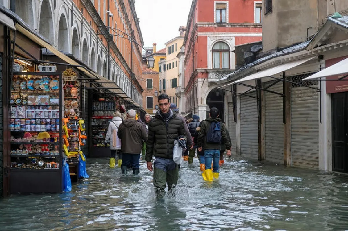 انتعل السُكَّان والسيَّاح على حد سواء أحذية بلاستيكية تصل إلى فوق الركبة للتجول في البندقية التي اجتاحتها المياه إلى مستوى استثنائي أغرق المدينة العائمة. وقدَّمت بعض الفنادق أحذية بلاستيكية للسياح الذين جاءوا لزيارة المدينة بعد أن غمرت المياه ساحة سانت ماركو الشهيرة، وفقاً لموقع «العين».