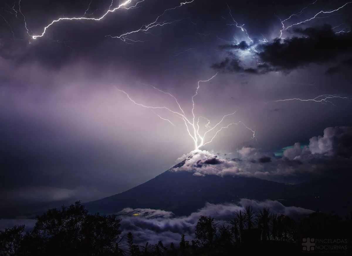 وتمكن المصور سيرجيو مونتفار من التقاط الحدث المفاجئ عندما انبعث الرماد البركاني من قمة البركان المركب Volcán de Pacaya، وهو بركان نشط في جمهورية غواتيمالا في أمريكا الوسطى، حيث كان يخطط لتصوير الحمم البركانية التي تتدفق من البركان عقب تنبؤات جوية تقول إن السماء ستكون صافية.