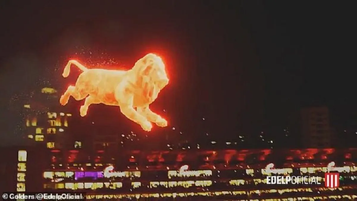 في واقعة مدهشةٍ ومرعبةٍ في آنٍ.. فوجئ جمهور فريق "إستوديانتيس" الأرجنتيني، بأسد عملاق ملتهب يقفز على منصة مرتفعة في ملعب لكرة القدم أمام آلاف المتفرجين.