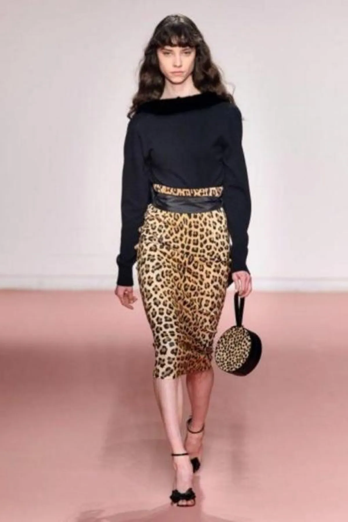 تحتاج صاحبة القوام على شكل التفاحة إلى أزياء تخفي الجزء العلوي الممتلئ وتزيد من عرض الجزء السفلي، لذا ننصحك بأن تقتني تنورة بطبعات الحيوانات سوداء كانت منفوشة كما في مجموعة دينيس باسو Dennis Basso أو مستقيمة القصة مثل تصميم بلومارين Blumarine ونسقيها مع توب أسود لتنحفي المناطق الممتلئة.