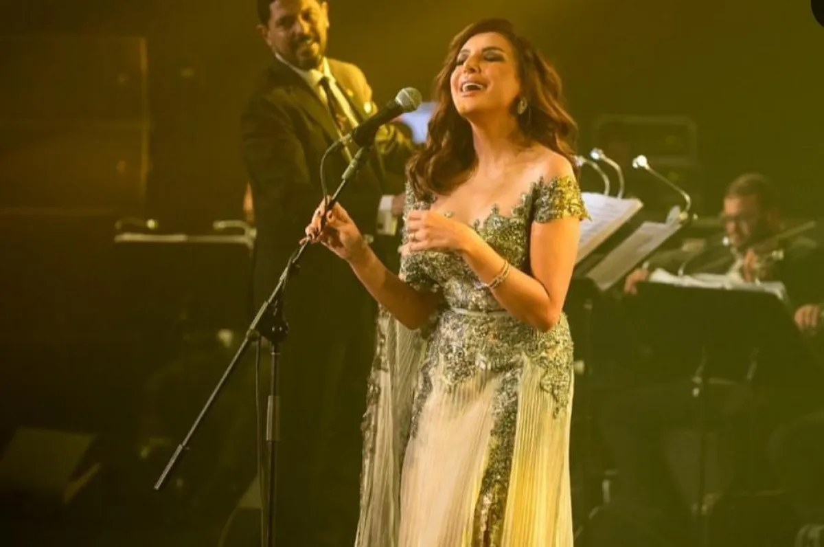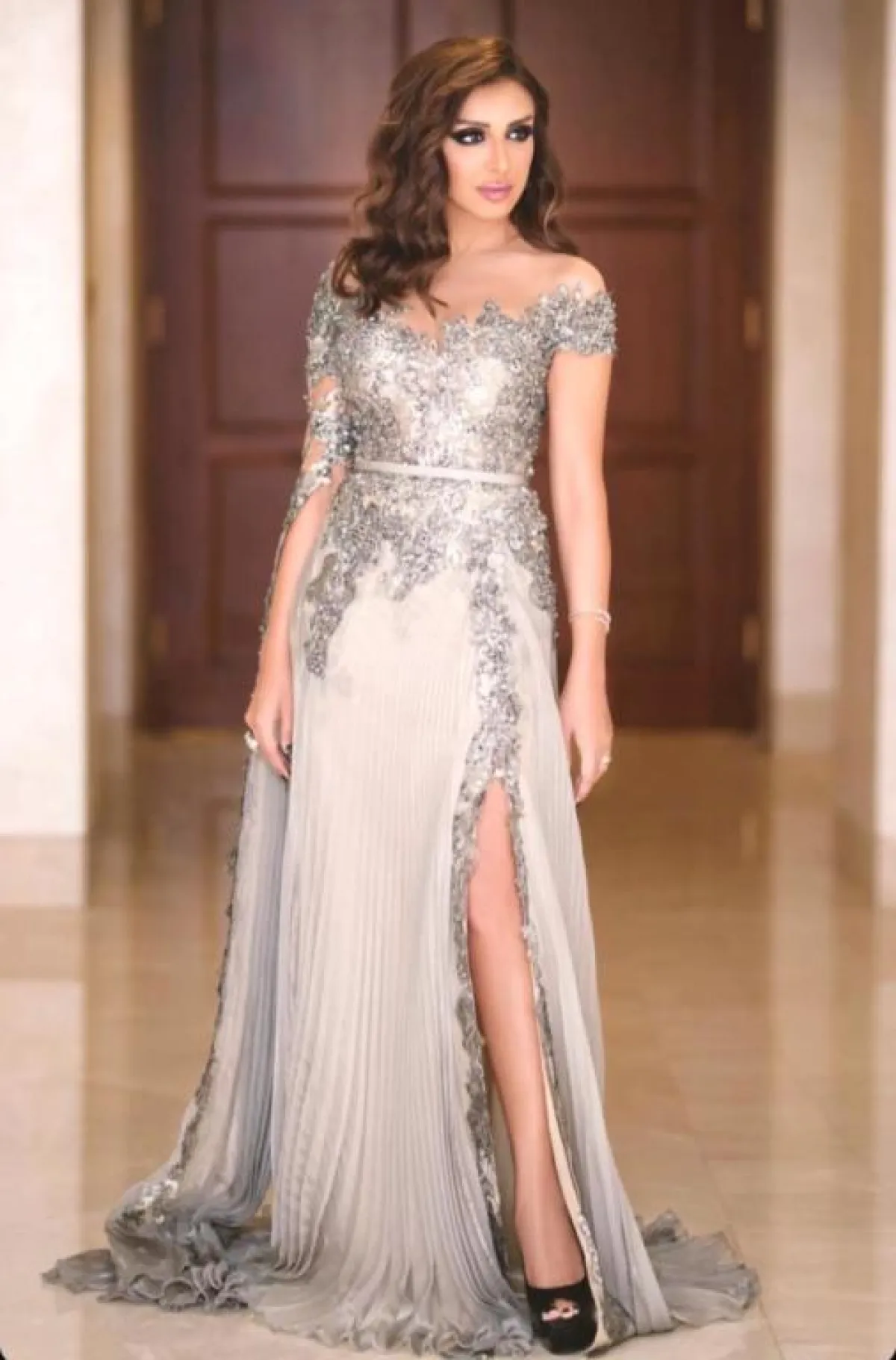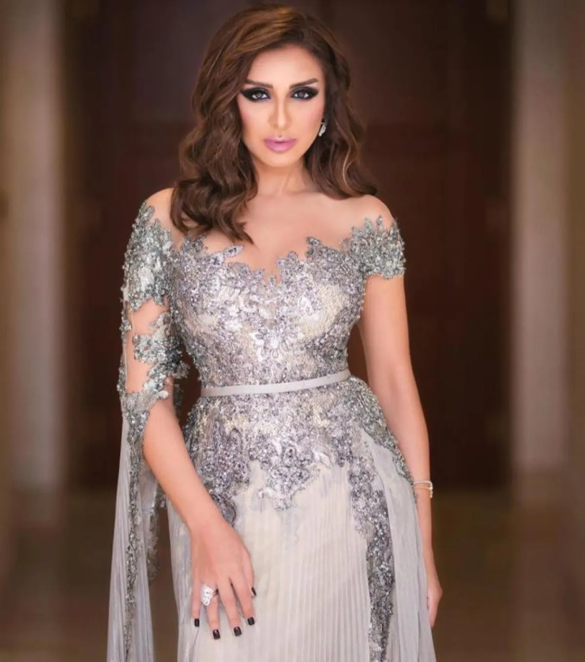 أناقة أنغام بفستان فضي لامع