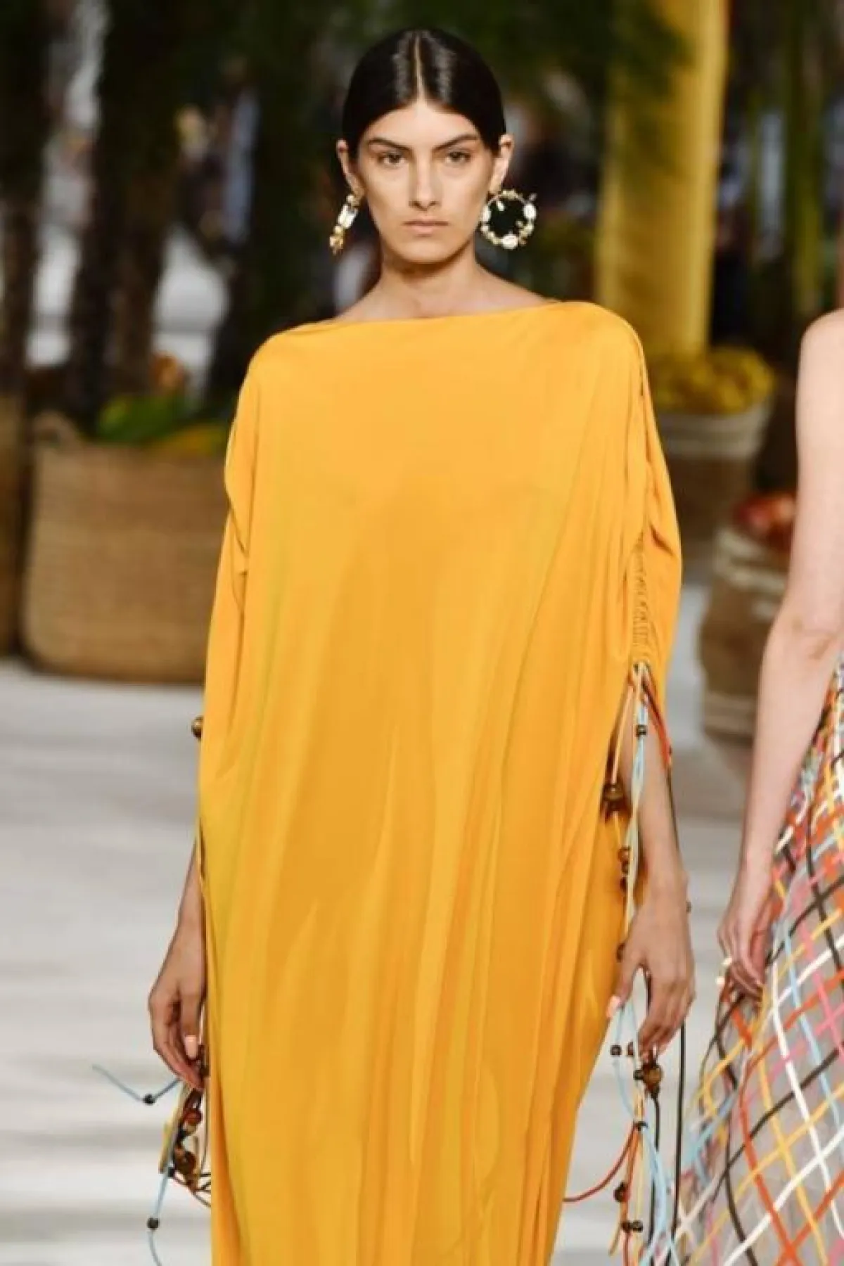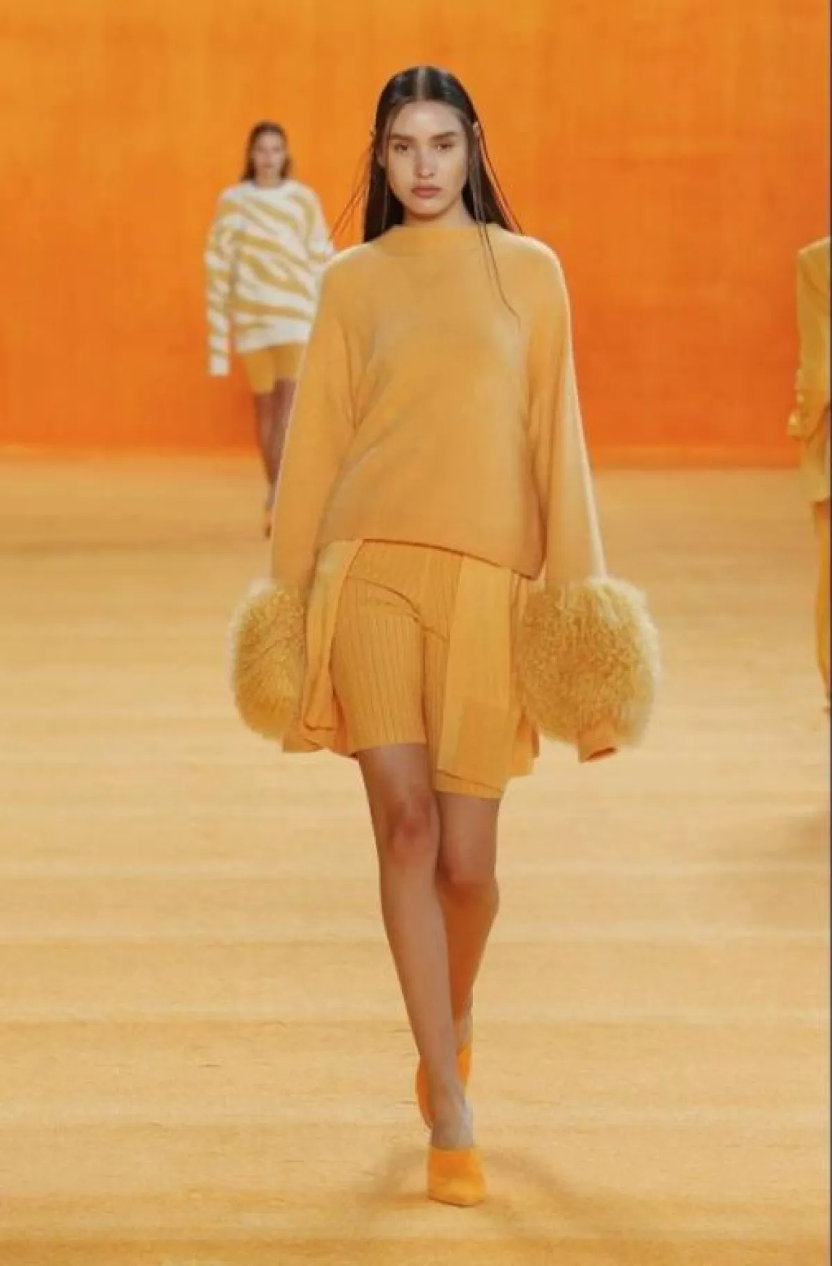 لمسات البرتقالي تتداخل مع الأصفر لتنتج لون ساحر وجريء يعكس تفاؤلاً على الاطلالة. برزت صيحات بكاملها من هذا اللون.