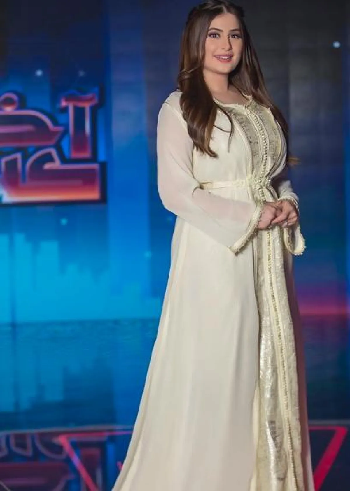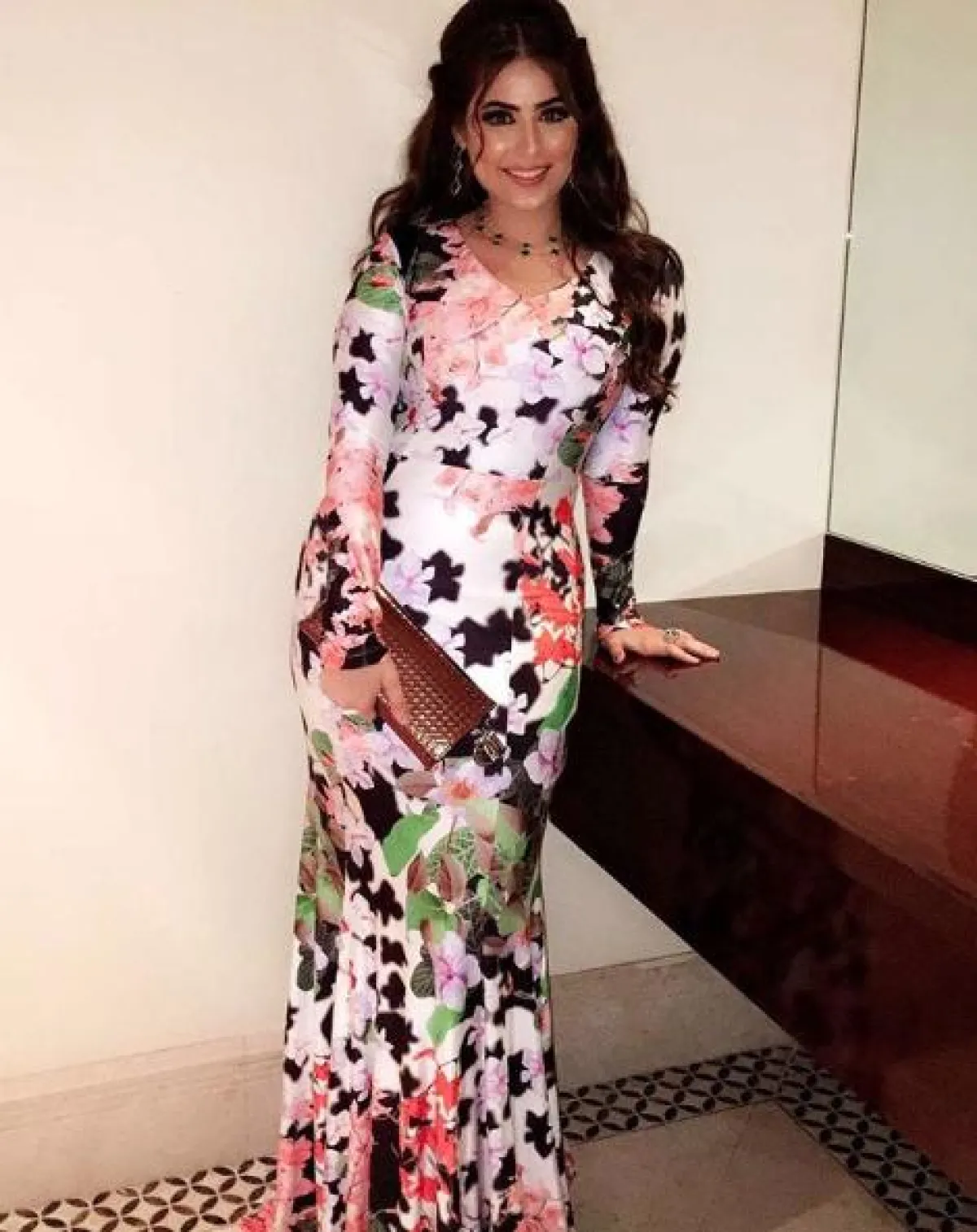 فستان ميدي بكمّ طويل اختارته رؤى الصبان