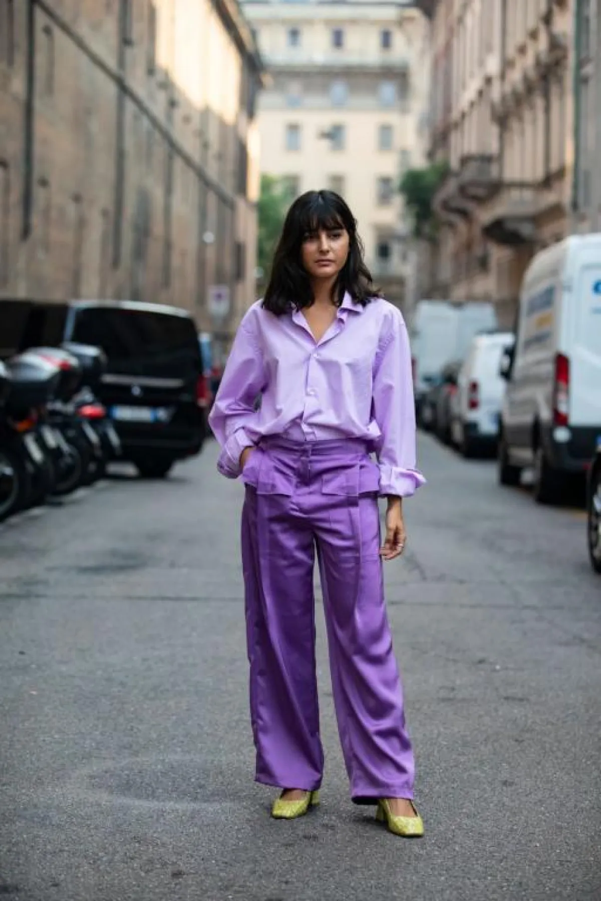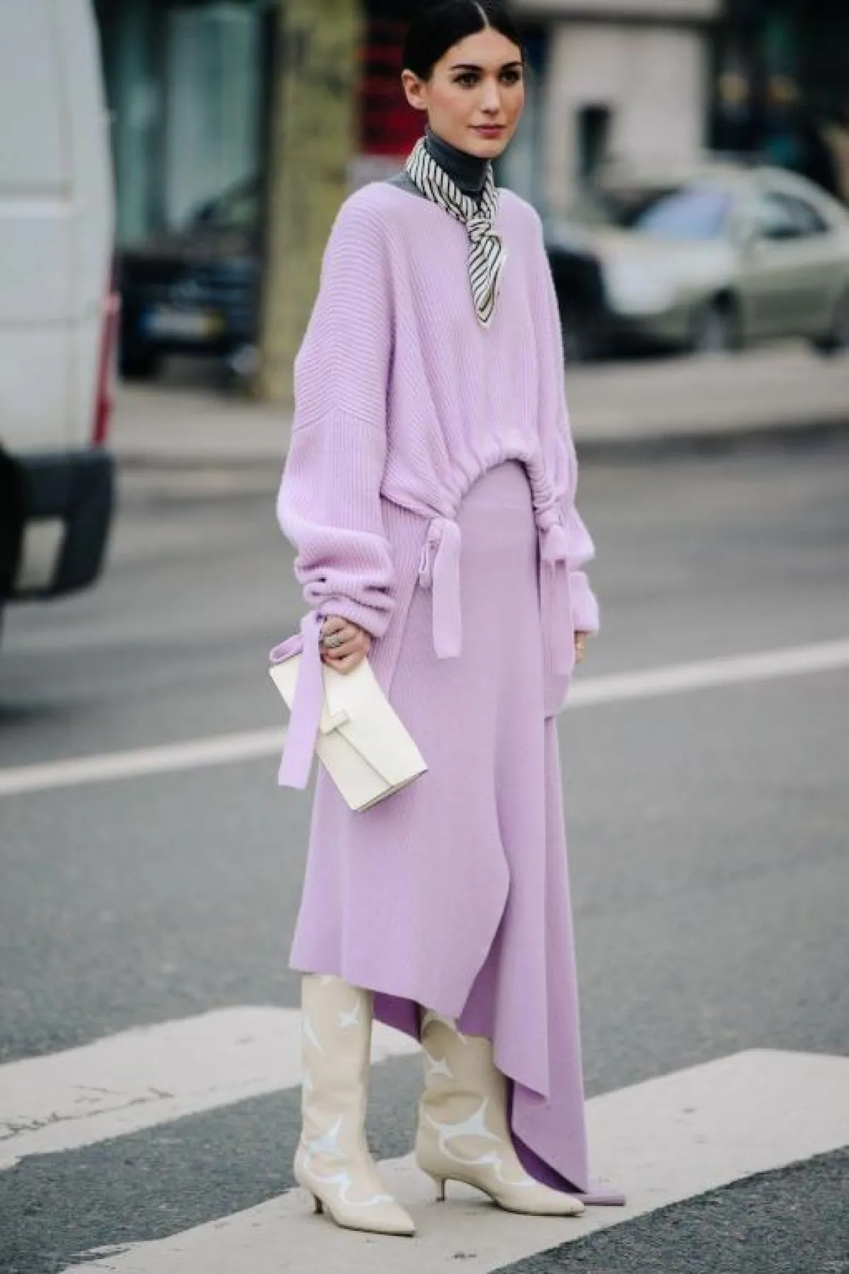 ننصحكِ بشراء أكثر من قطعة بظلال اللافندر وتنسيقها معاً بنمط المونوكروم. شاهدي أفكار لتنسيق اللافندر من موضة الشارع.