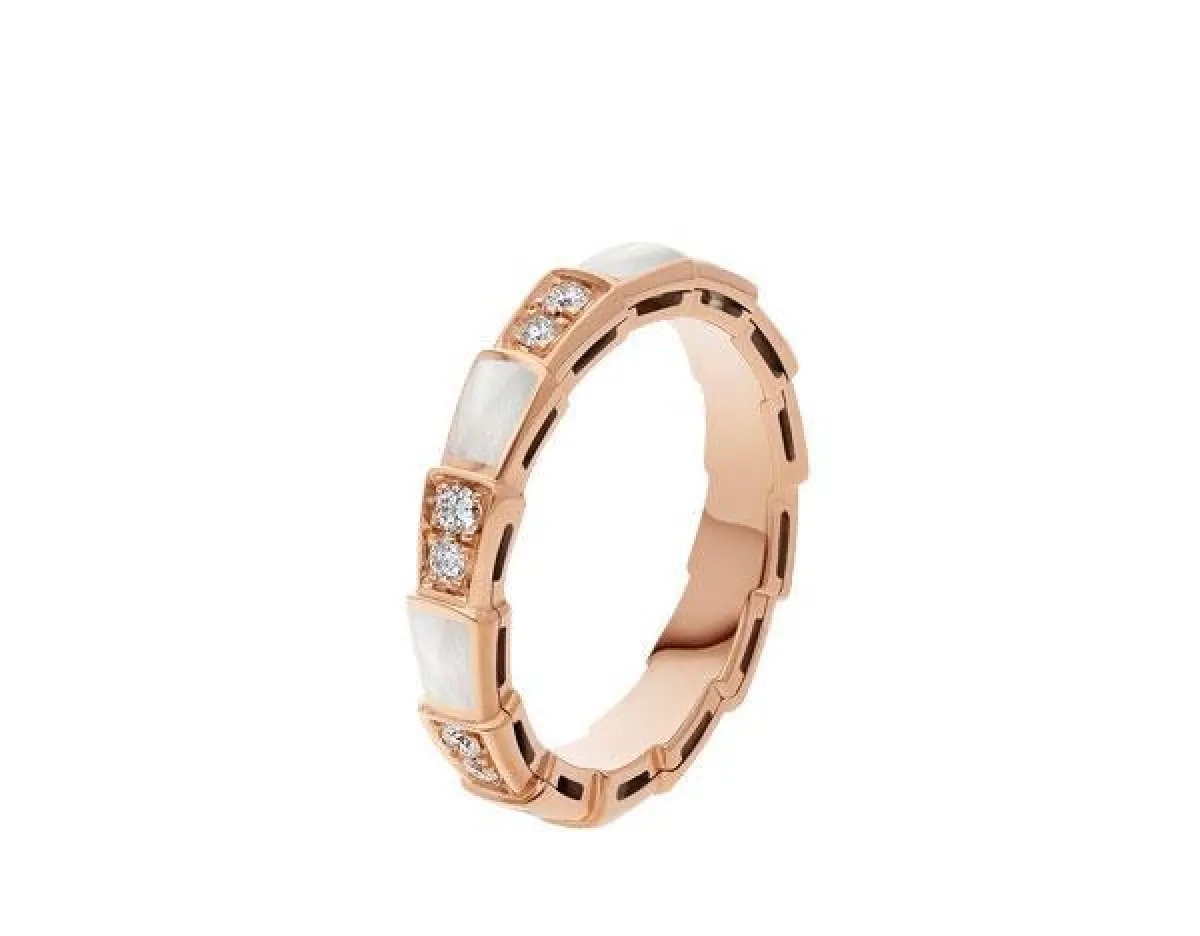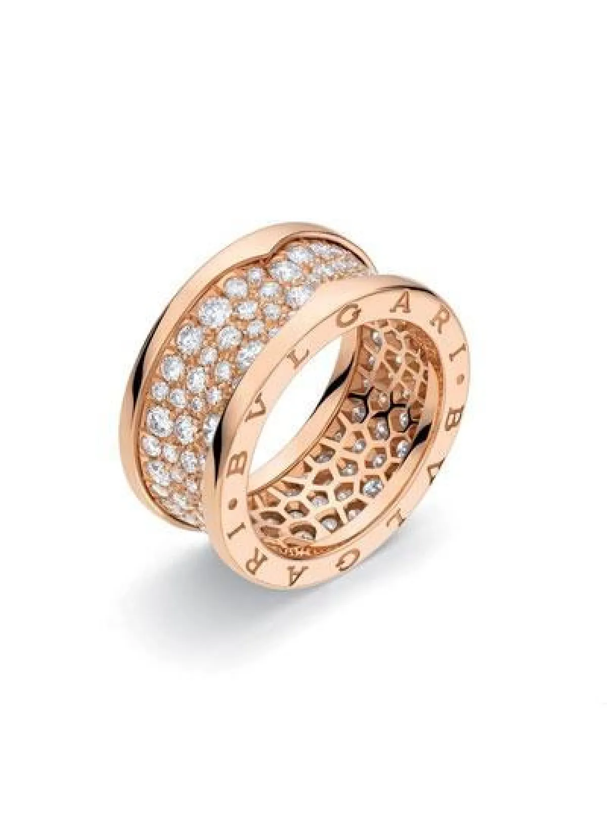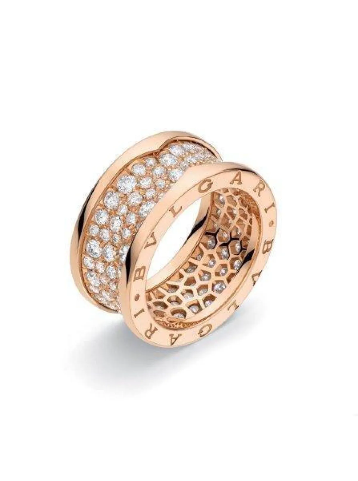 تحرص ماركة بولغاري على تقديم العديد من موديلات دبل الخطوبة العصرية، سواء بتصاميم عريضة أو رفيعة، ومنها الدبل المرصعة بفصوص الألماس البرّاقة.