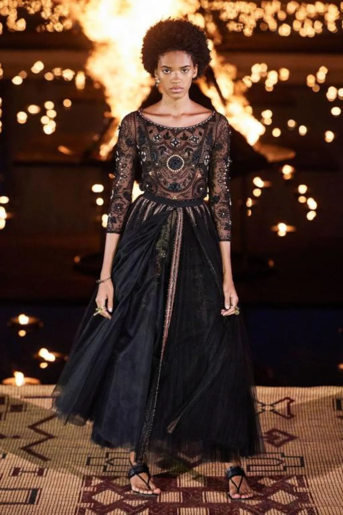 أعجبنا هذا الفستان المطرز بطريقة فخمة من دار Christian Dior، ضيق من الخصر ومنفوش من التول، مناسب لكل الصبايا، ويُبرز جمال الجسم، ويمنحكِ اطلالة أكثر شاقة ومترفة.