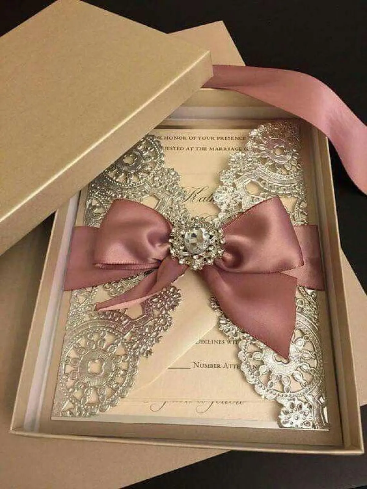 بطاقة الدعوة الورقية مع رباط ساتان