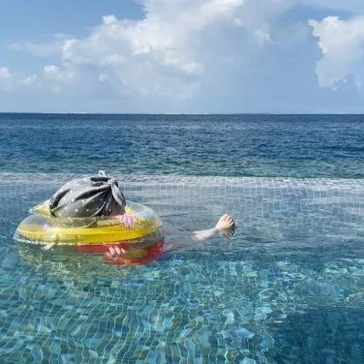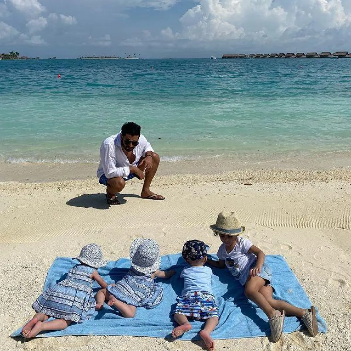 كما نشرت الدكتورة خلود صوراً للأطفال الأربعة في المالديف ولكن من دون أن تكشف عن وجههم، بالإضافة إلى مقطع فيديو لزوجها أمين وهو يعلم إبنته الكبرى خلود السباحة.