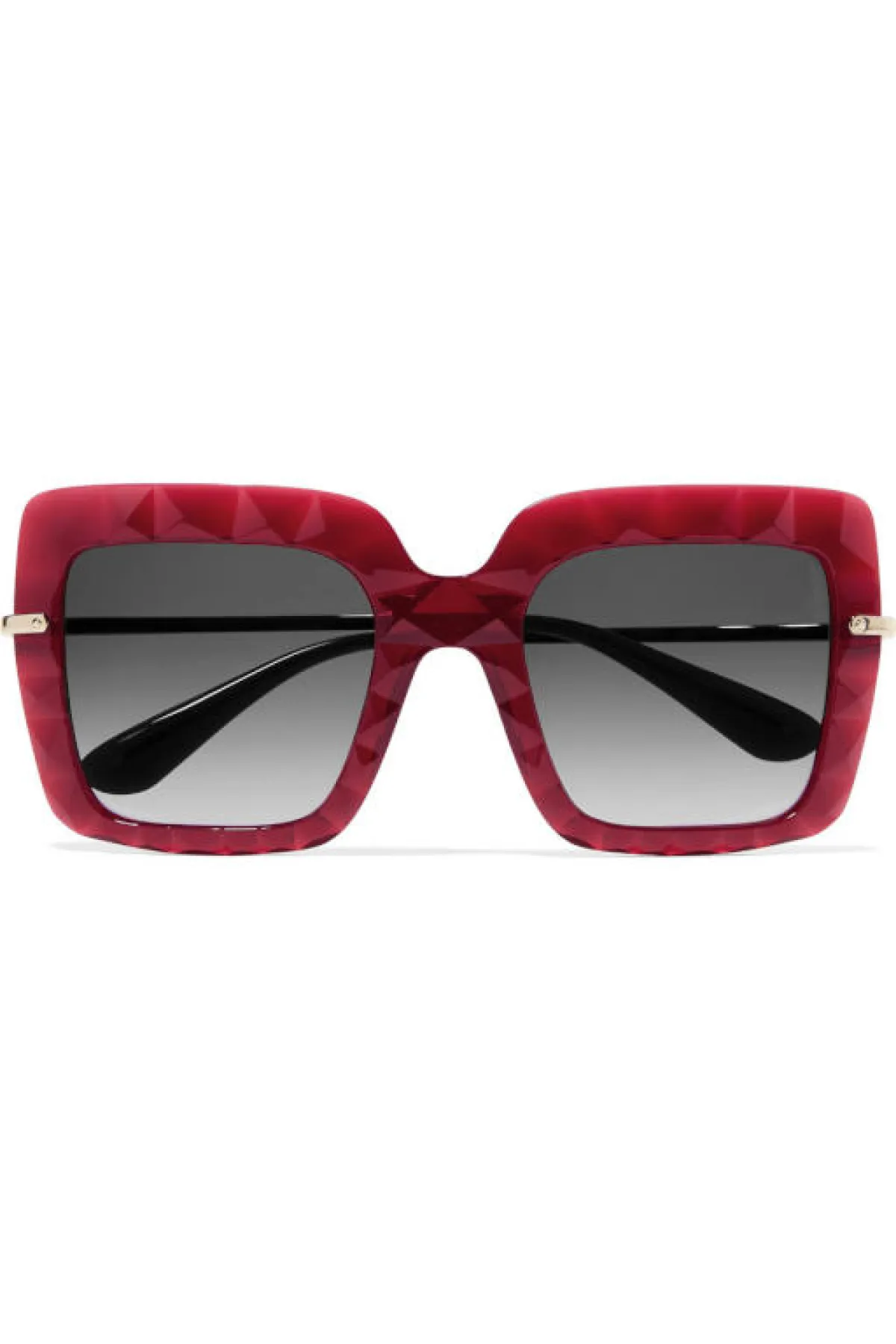 أما Dolce & Gabbana فقد قدمت نظارات شمسية بإطارات عريضة على اعتبار أنها ترند هذا الشتاء، جاءت عدساتها باللون الأسود أما الإطارات فتلونت بالأحمر الداكن.