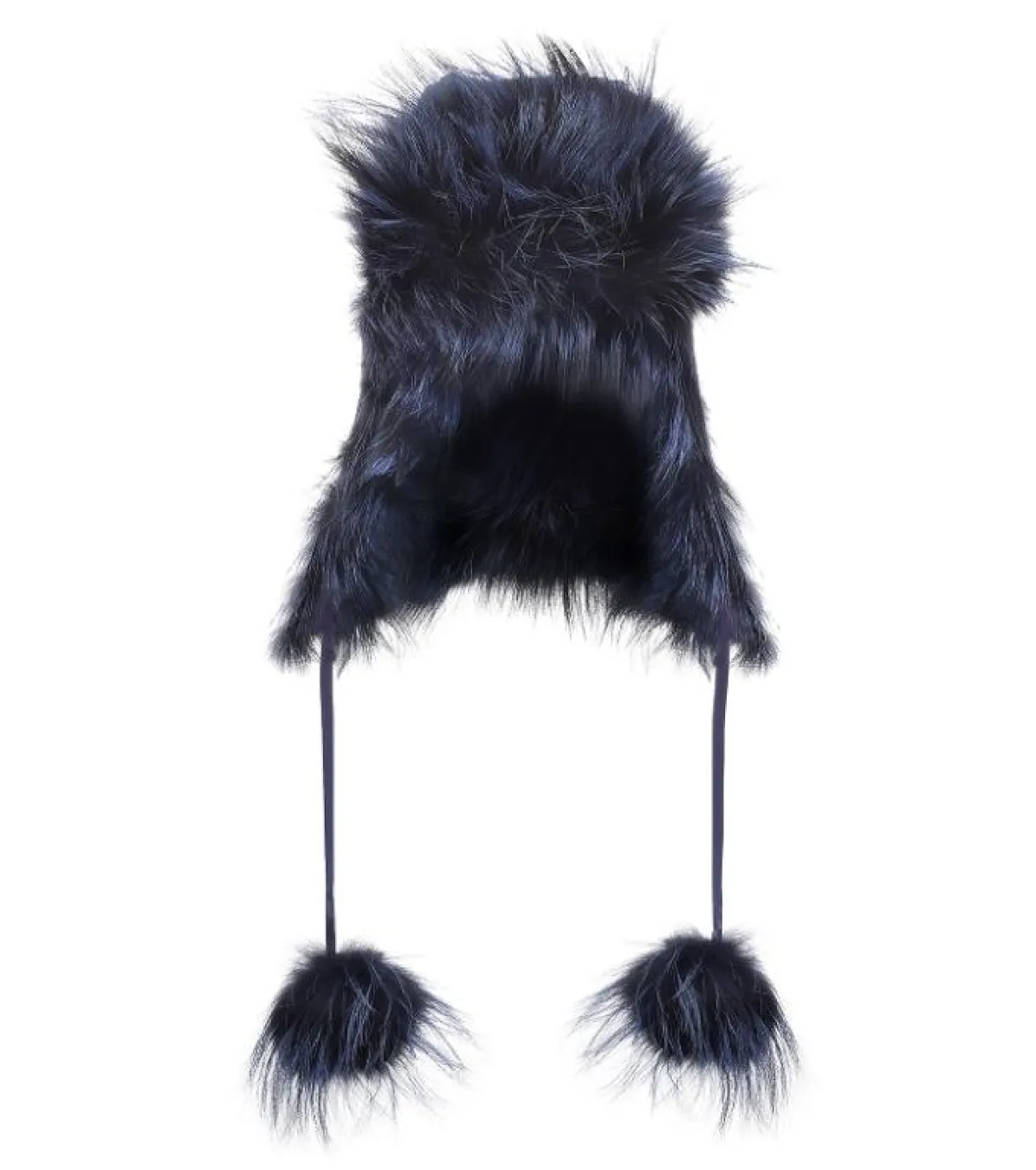 ولهذا السبب اخترنا لكنّ مجموعة من الاكسسوارات ذات اللون الأزرق الغامق الترند لشتاء 2020، فنالت إعجابنا قبعة من الفرو الأزرق الغامق من Fendi، جاءت بتصميم مميز وعصري يناسب الإطلالات الكاجوال، مع كرات الفرو المتدلية من جوانبها.