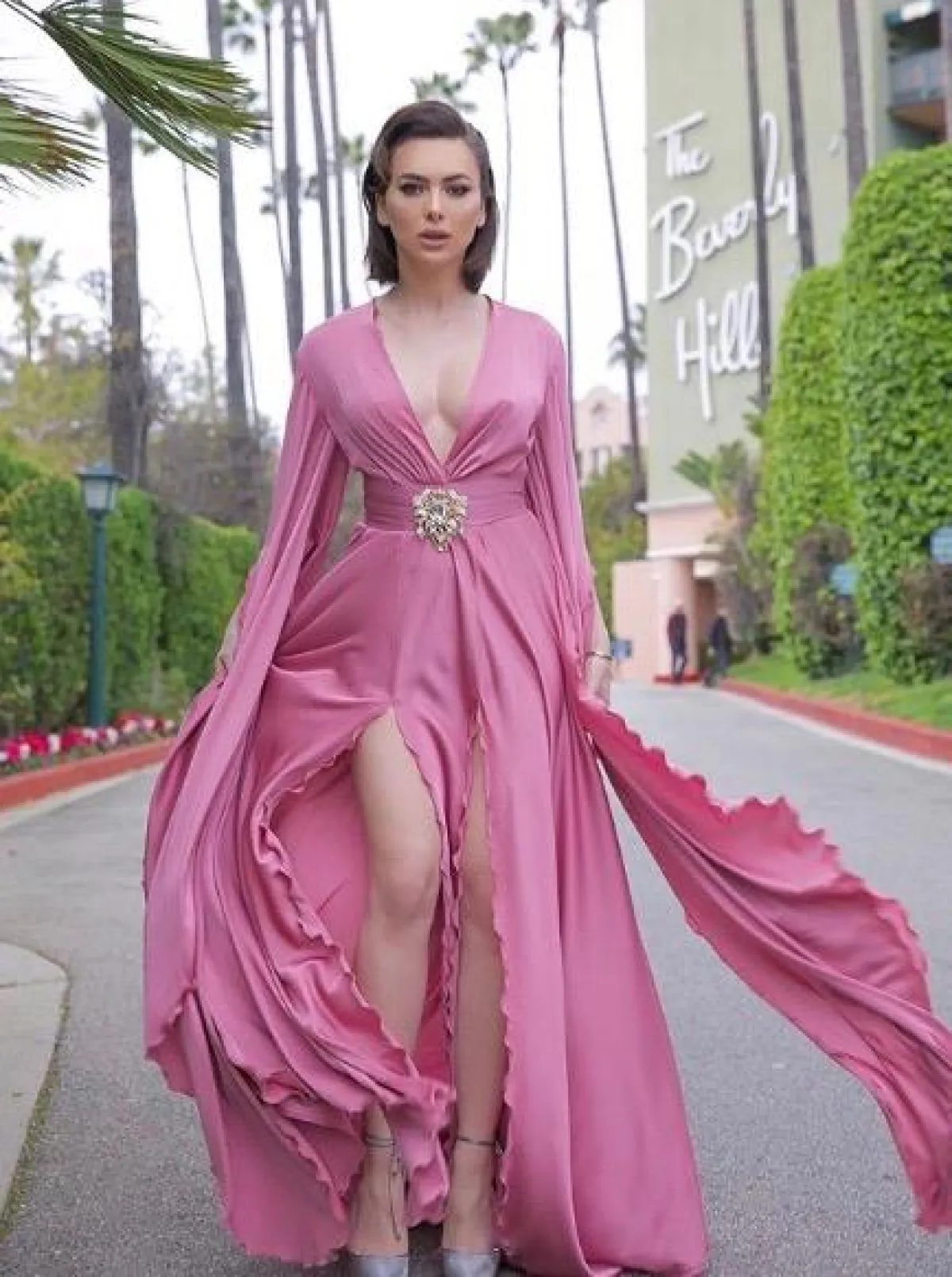 ستيفاني صليبا في فستان ناعم باللون الزهري