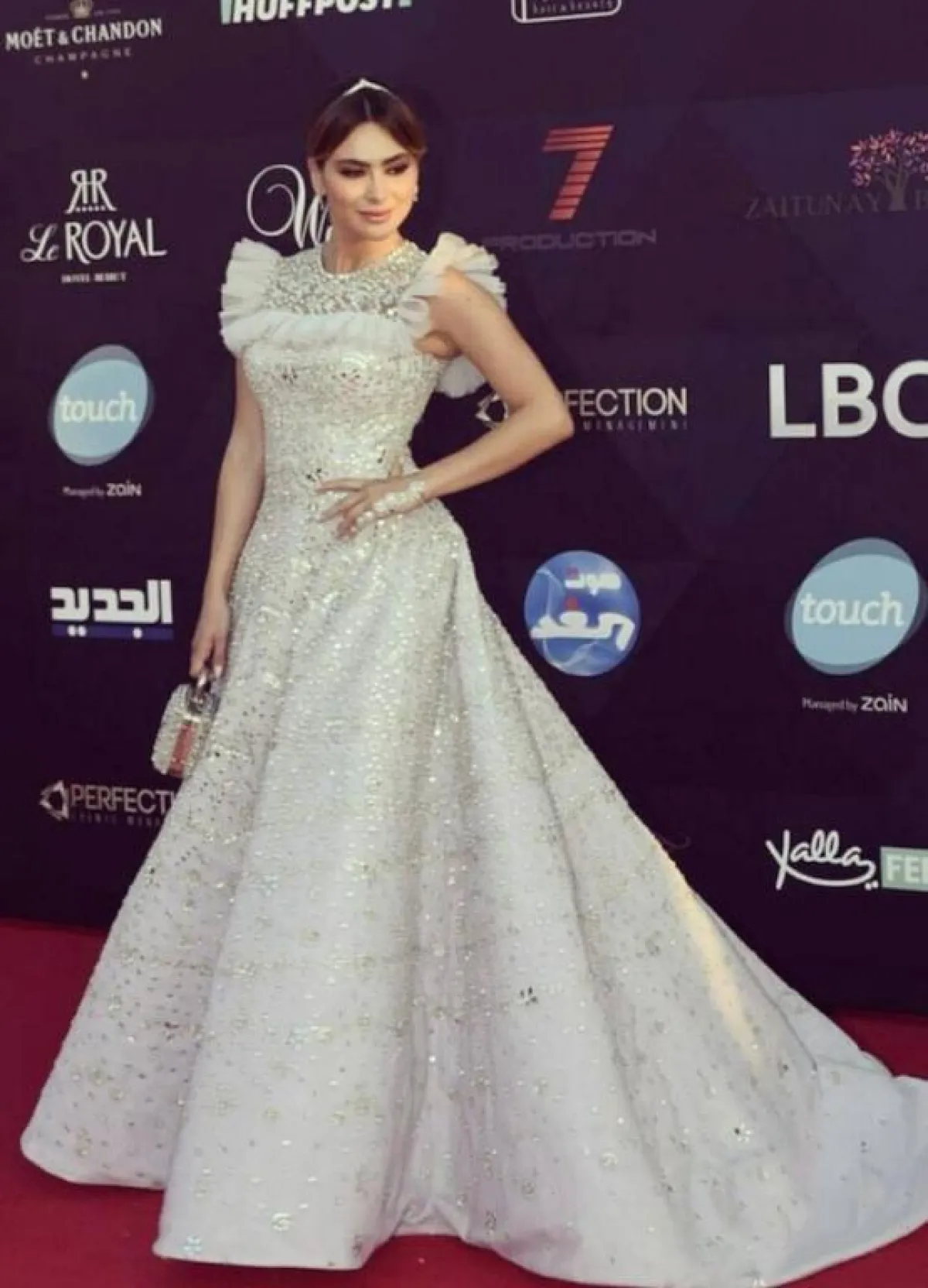 ستيفاني صليبا في فستان سهرة قصير براق