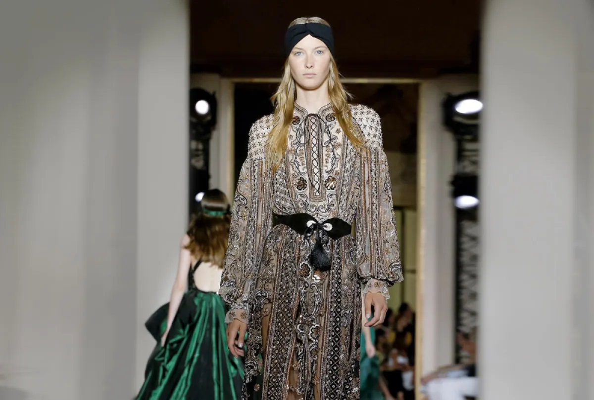 عادة ما يكون التطريز هو سيد الموقف عند الحديث عن مجموعات الكوتور ولكن هذا العام استحوذت الفساتين المطبعة على إهتمام الكثير من المصممين وتسابقت أسماء مثل ألكسندر فوتييه Alexandre Vauthier ورونالد فان دير كيمب Ronald van der Kemp على تقديم فساتين اتسمت بإحتشام القصات وجرأة النقوشات لا سيما الفستان المغطى بنقشة جلد النمر من توقيع رالف آند روسو Ralph & Russo.