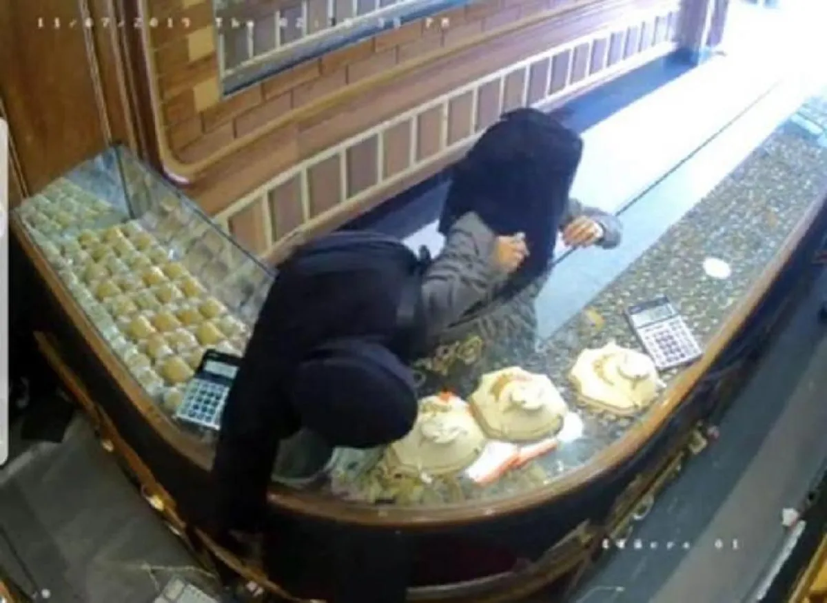ويظهر المقطع كيف خدعت الفتاتان البائع ، وطلبن منه قطعة ذهب اخرى ، غير تلك التي كانتا قد تعرفتا عليها وارجعنها ، وعندما ذهب البائع الى زاوية من المحل ليستخرج لهن قطعة طلبتاها ، سارعت احداهما بإدخال يدها الى حيث مكان قطعة الذهب وسرقتها ووضعتها بسرعة في شنطتها ، دون ان يلاحظ البائع عملية السرقة .