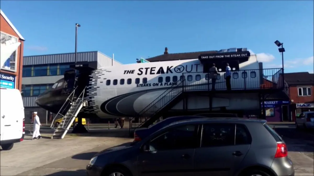 من آسيا ننتقل إلى القارة الأوروبية، وتحديداً إلى مدينة بولتون شمال غرب بريطانيا، حيث سنتناول وجبة عشائنا في مطعم ستيكس أون بلاين Steaks on a Plane، والذي يعني بالعربية شرائح اللحم على متن طائرة، وهو مطعم للمأكولات التقليدية تم افتتاحه في طائرة بوينغ 737 قديمة. والجدير بالذكر أنه مطعم بتصميم بسيط وأسعار مناسبة للجميع على الرغم من قائمة الأطباق اللذيذة التي يقدمها. أضف إلى ذلك أنه يتيح لزبائنه زيارة قمرة القيادة والتقاط صورة مع قادة الطائرة، الذي قد يكون الشيف الذي يعد قائمة الطعام.