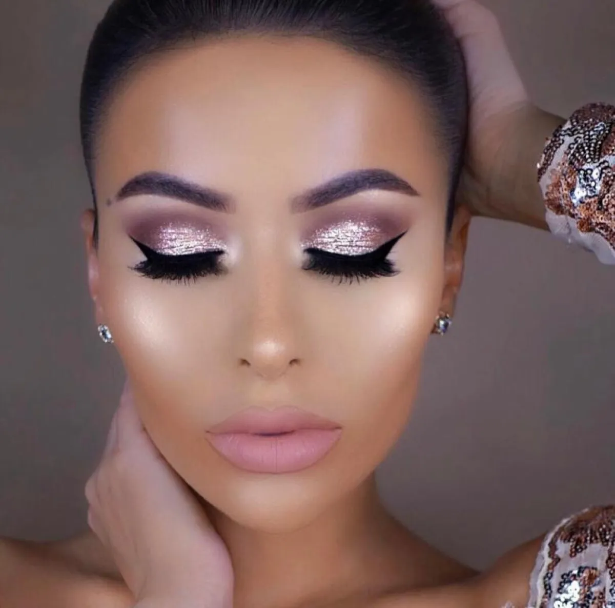 مكياج عيون غليتر بألوان النود