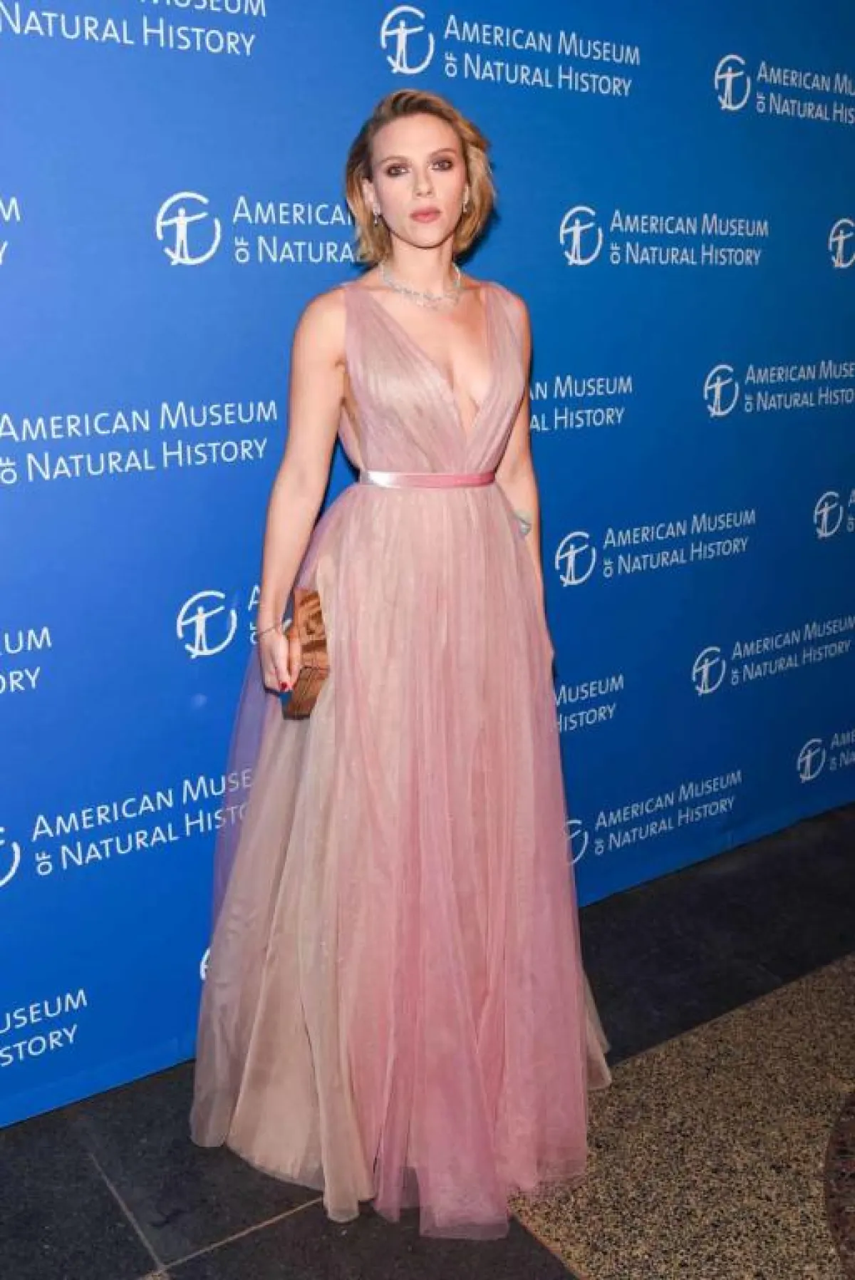 سكارليت جوهانسون في فستان من التول الزهري من جاي ميندل مؤخراً هذا العام