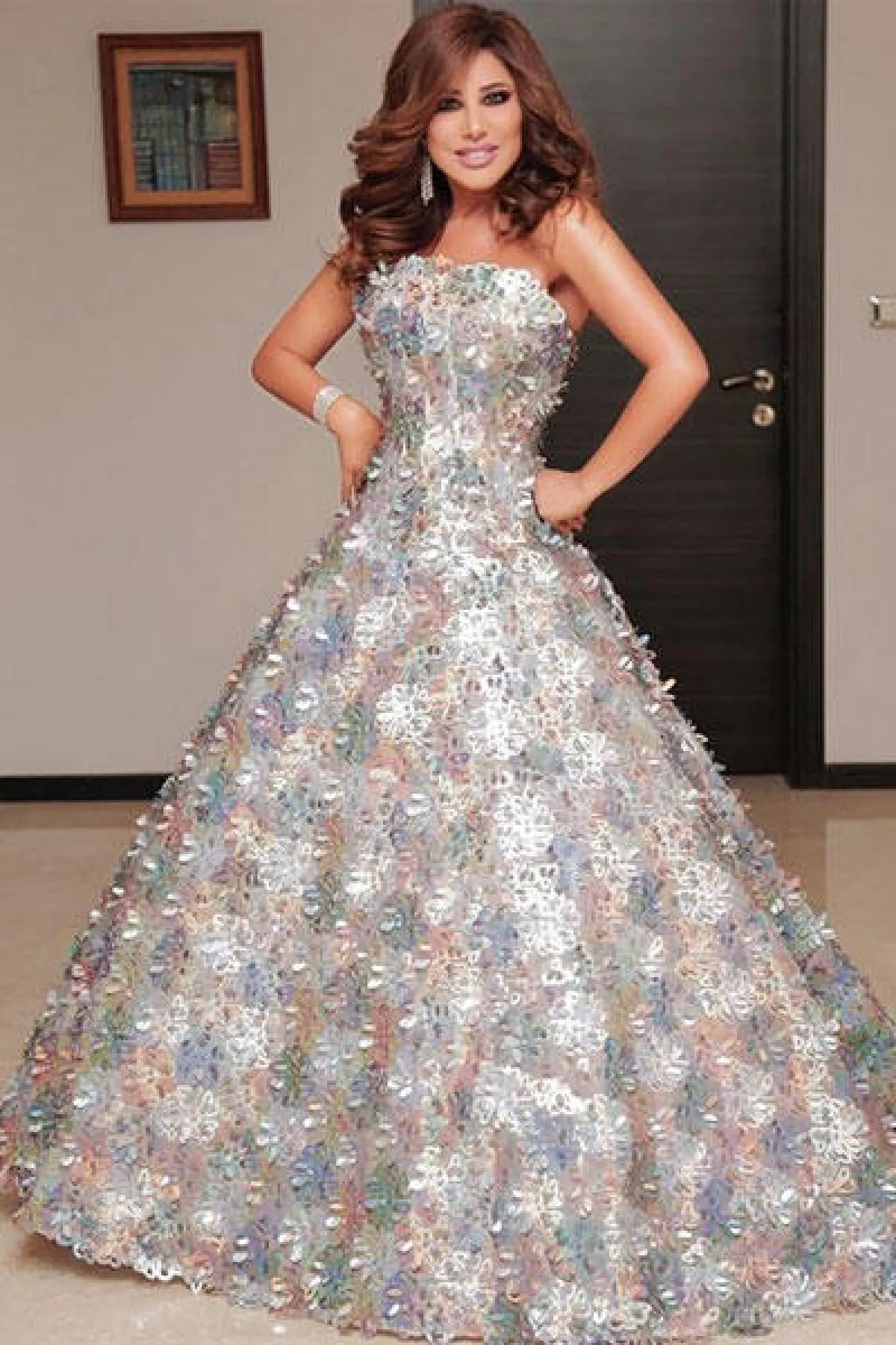 شاهدي أجمل فساتين نجوى كرم لتستوحي منها إطلالتك يوم الخطوبة.