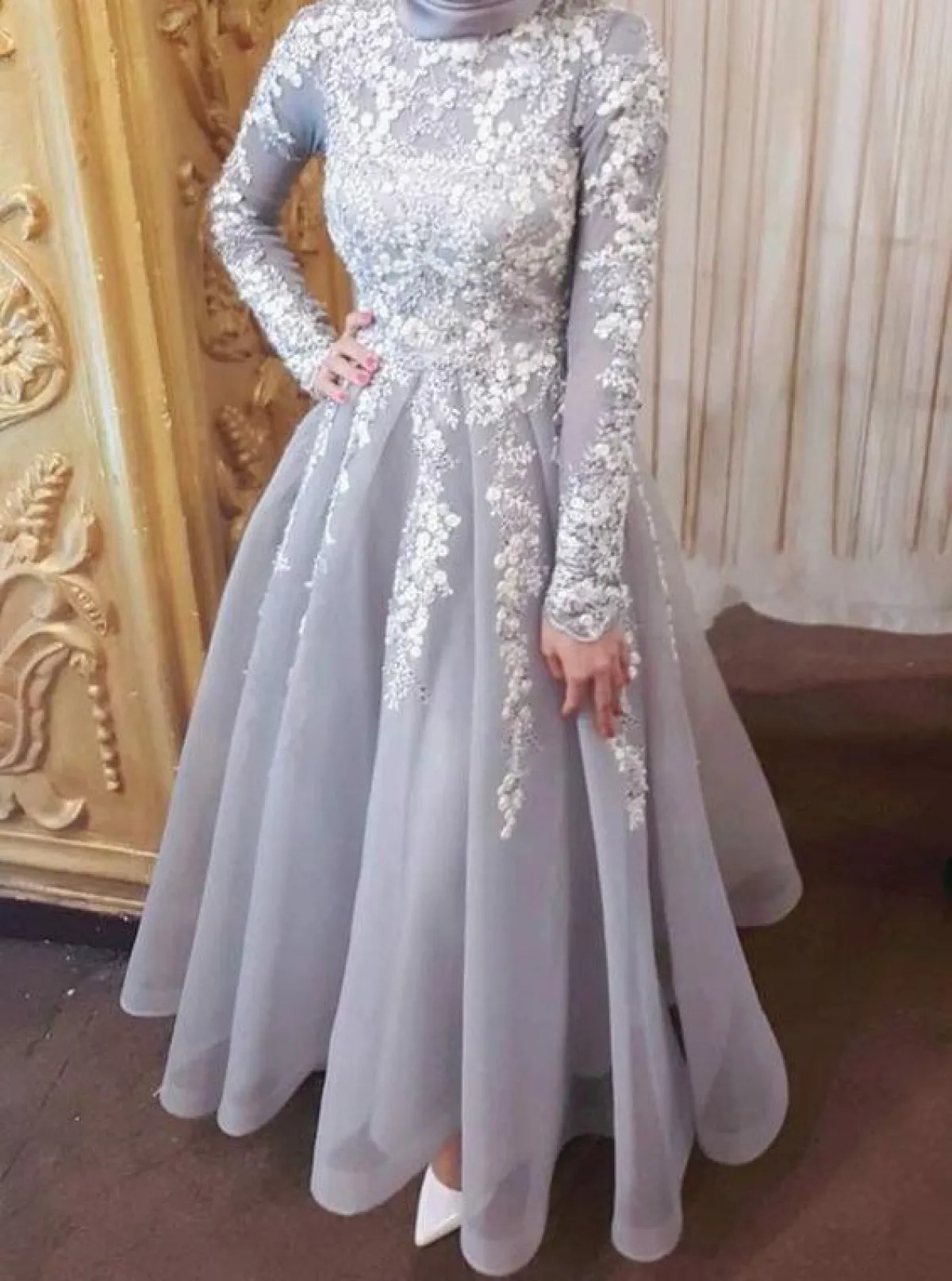 لفتنا هذه الموديلات بألوان الأبيض والرمادي الثلجي، مناسبة لكِ إن كنتِ ستحتفلين بخطوبتكِ هذا الموسم، مع تطريزات أشبه بورود الياسمين أو تساقط الثلج، اعتمدي معها الحجاب الأبيض أو بلون الفستان نفسه.