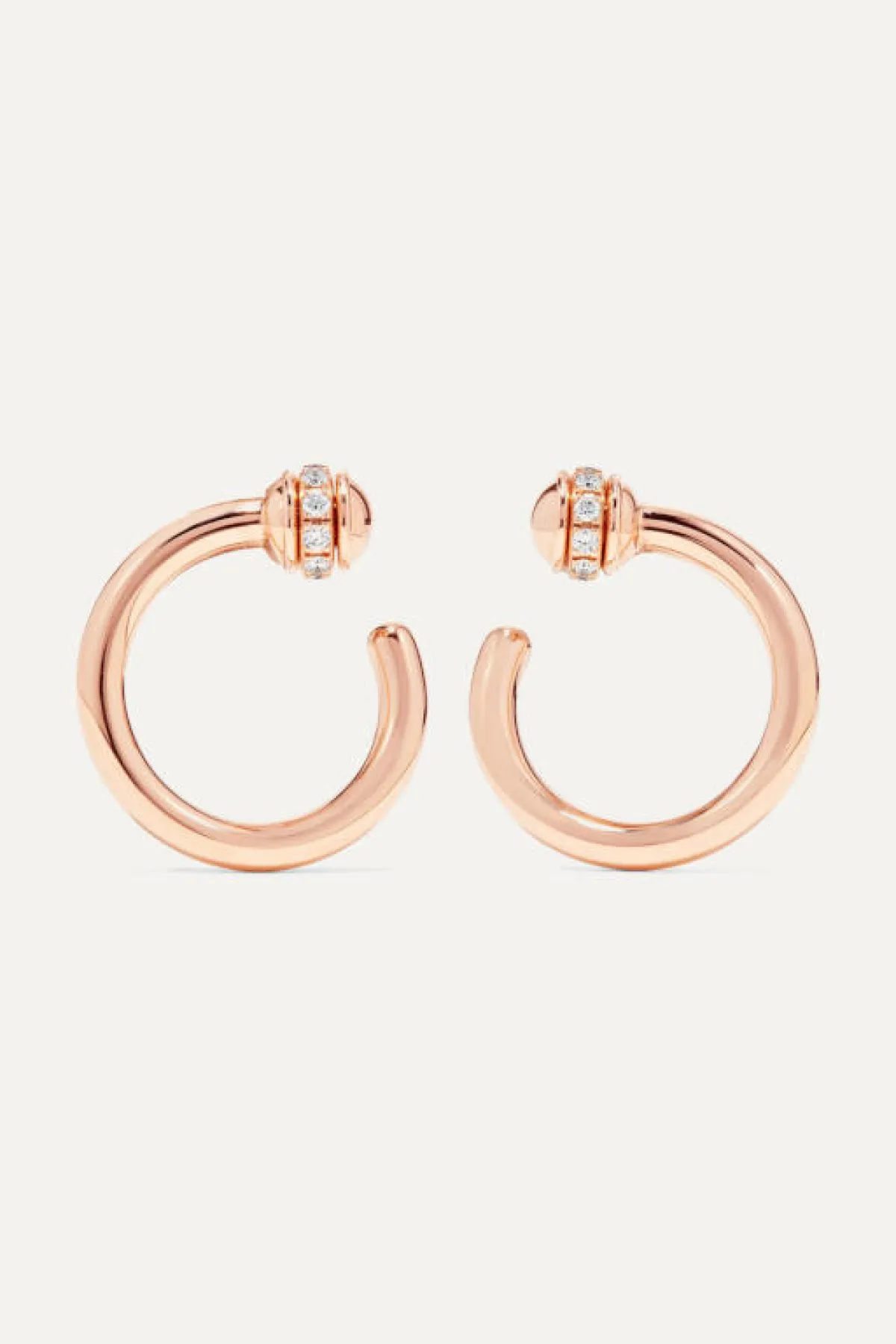 للإطلالات العصرية حصتها من الأقراط بتصميم الحلقة أيضاً، فقد قدمت دار Piaget أقراطاً جذابة من الذهب الوردي تناسب بشدة الإطلالات العصرية والكاجوال على الرغم من أنها رُصعت ببعض أحجار الماس الأنيق، لكنها جاءت لتمنح الأقراط فخامة لا مثيل لها من دون أن يطغى عليها الأسلوب الكلاسيكي.