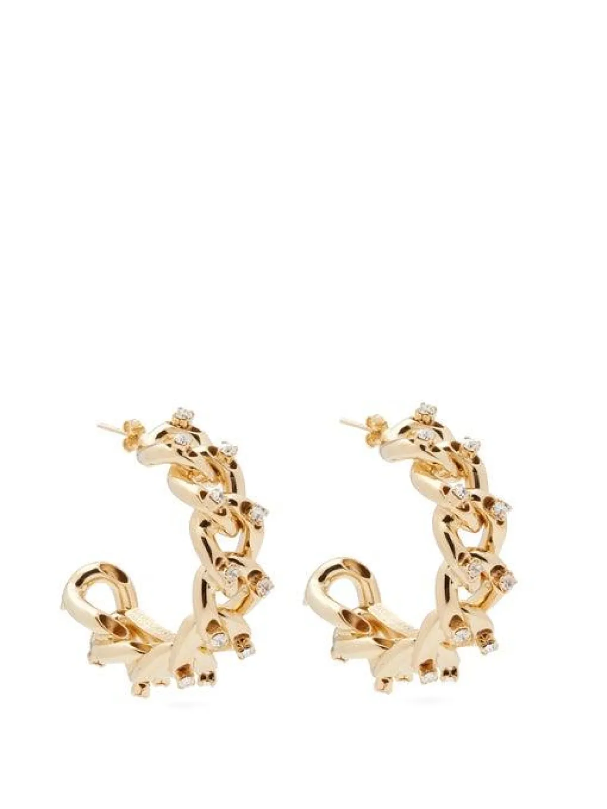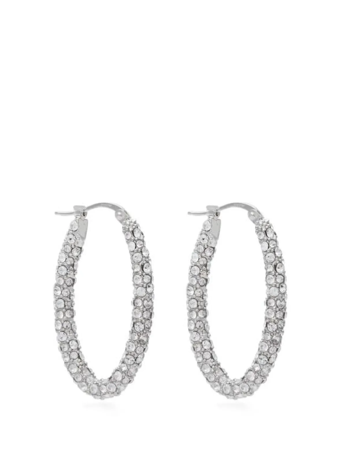 لم نتمكن من القيام بجولة على الأقراط ذات تصميم الحلقة من دون أن نتوقف طويلاً عند هذه الأقراط المميزة من Alexander McQueen، والتي جاءت مصنوعة من الذهب الأبيض مع ترصيع بأحجار الألماس الصغيرة الحجم، التي ملأت الأقراط بشكل كامل