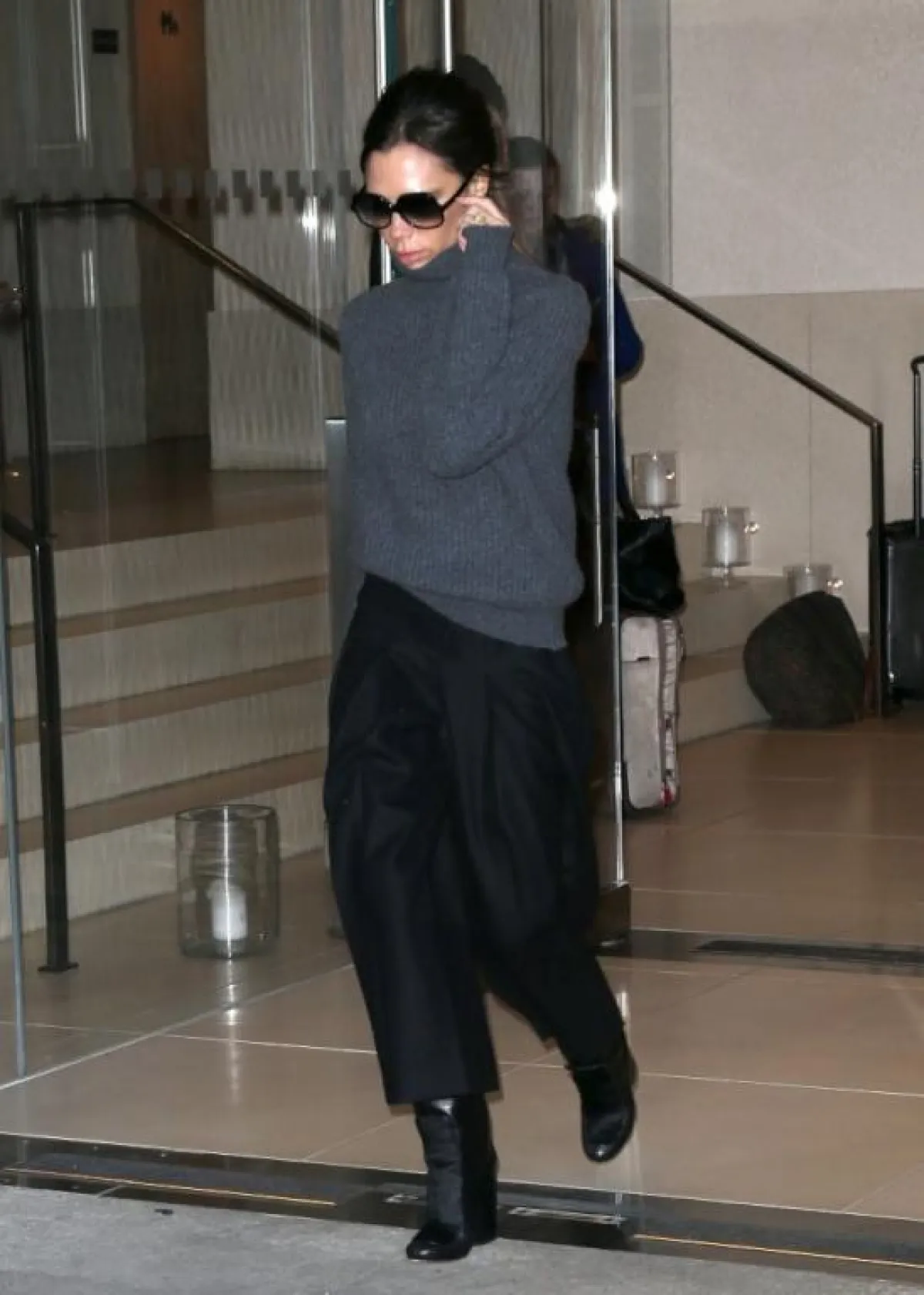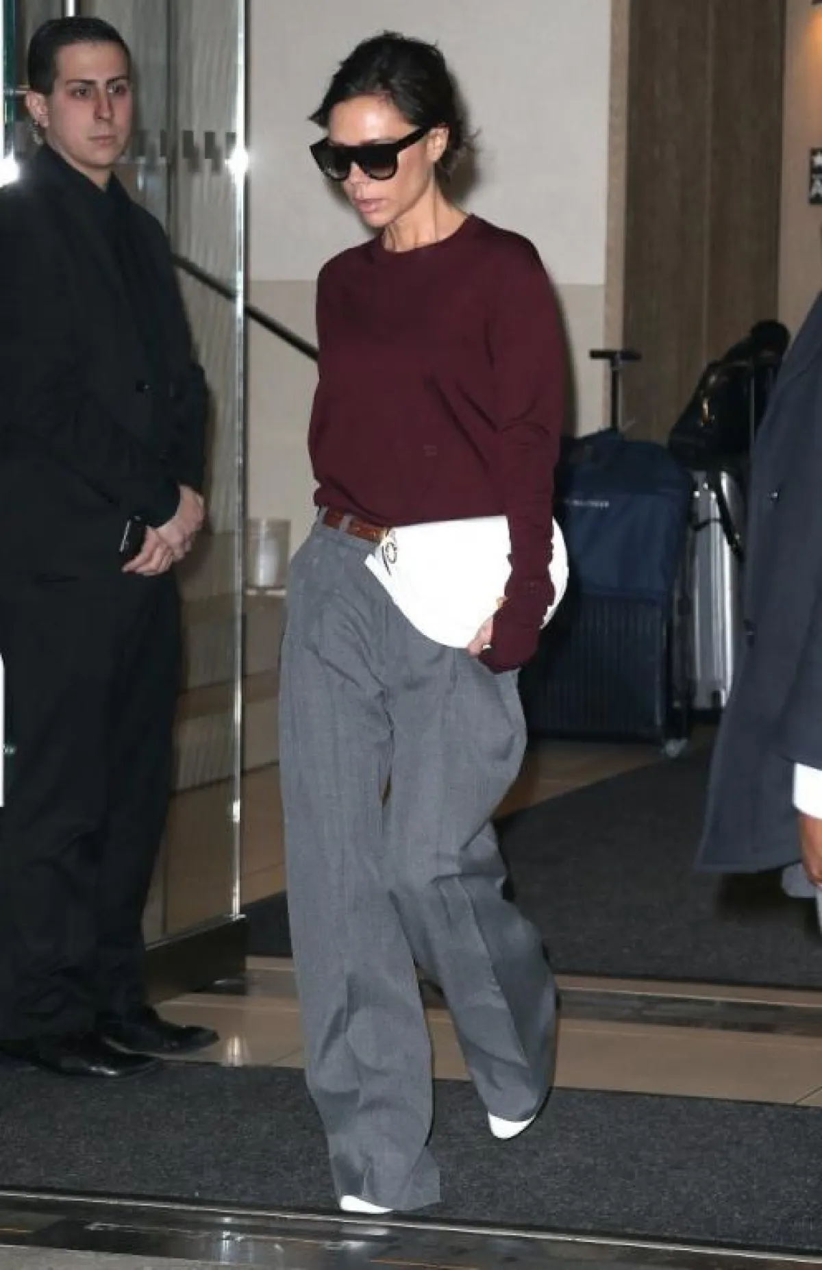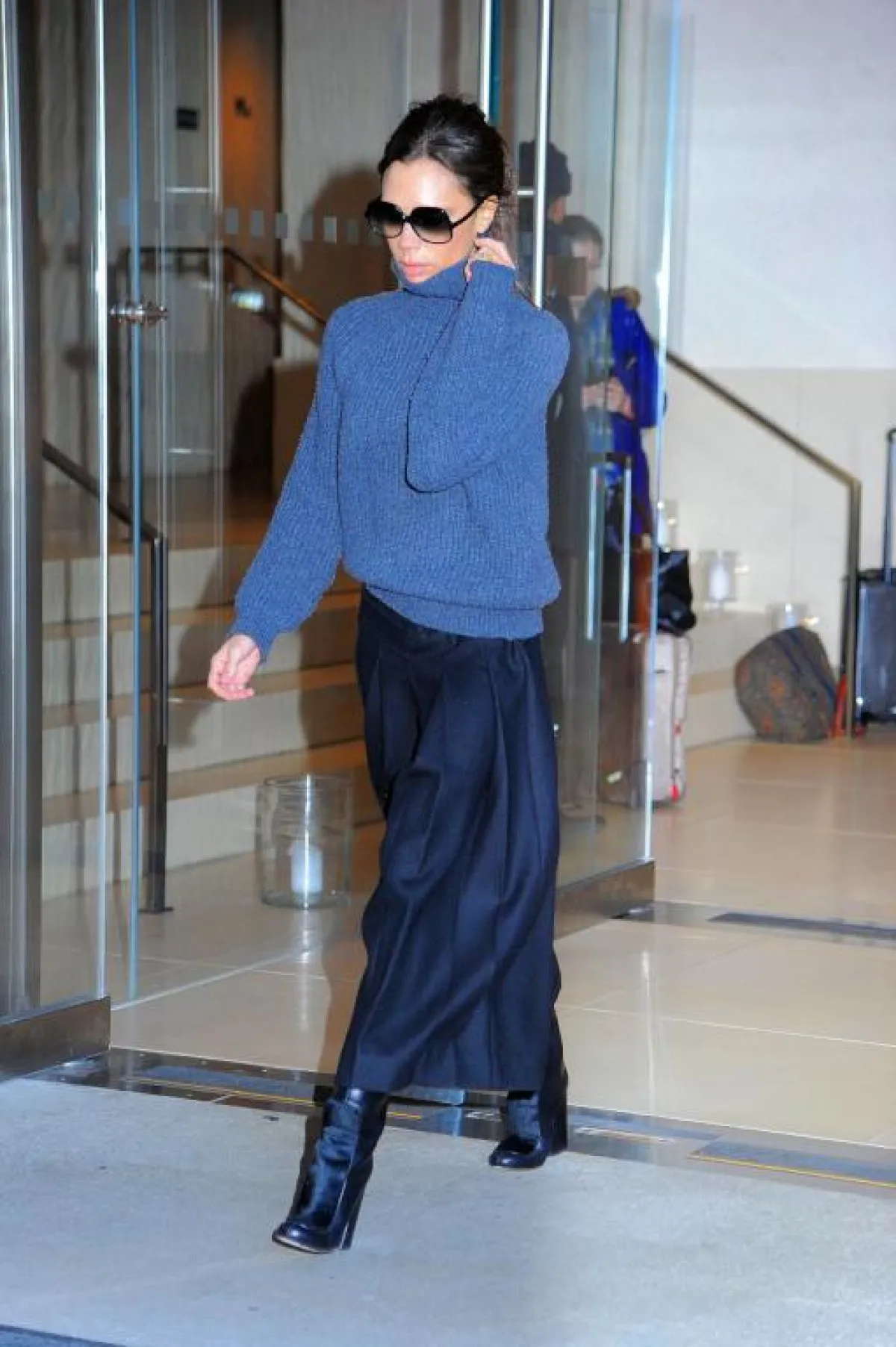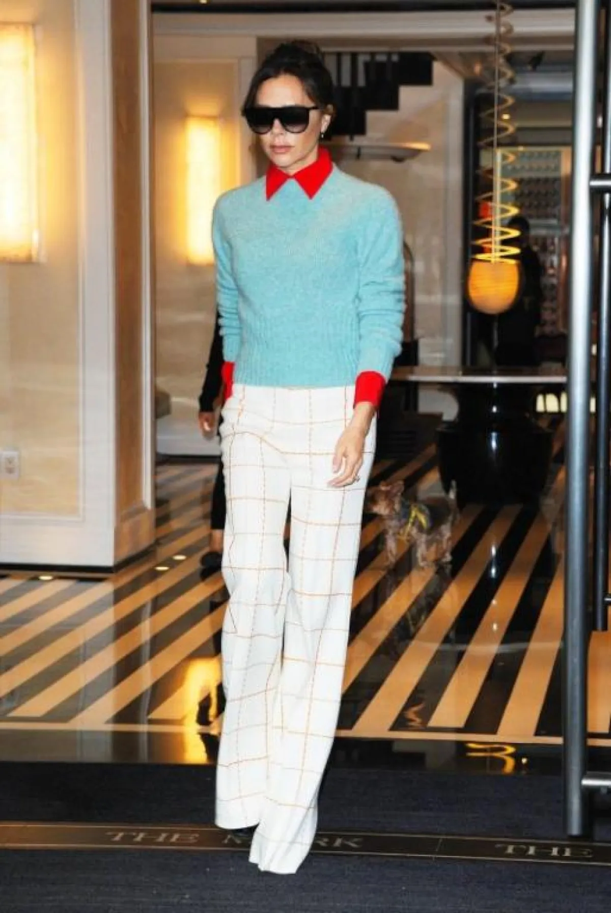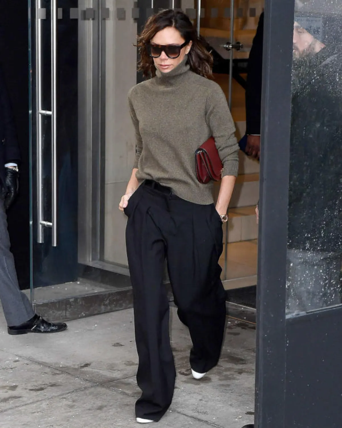البلوزة الصوف مع البنطلون القماشي بأسلوب فيكتوريا بيكهام