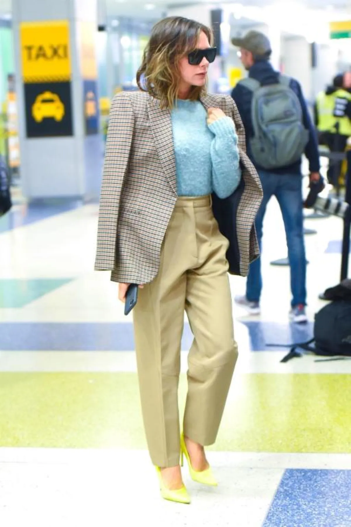 اطلالة مميزة نسقتها فيكتوريا بيكهام Victoria Beckham في البلوزة الصوف هذا الموسم، وقد اختارتها باللون الأزرق السماوي ونسقت معها بنطلونًا قماشيًّا بخصر عالٍ باللون البيج، ومن فوقها اعتمدت جاكيت بليزر بنقشة الكارو، وأضافت للوك لمسات عصرية من خلال الحذاء الأصفر.