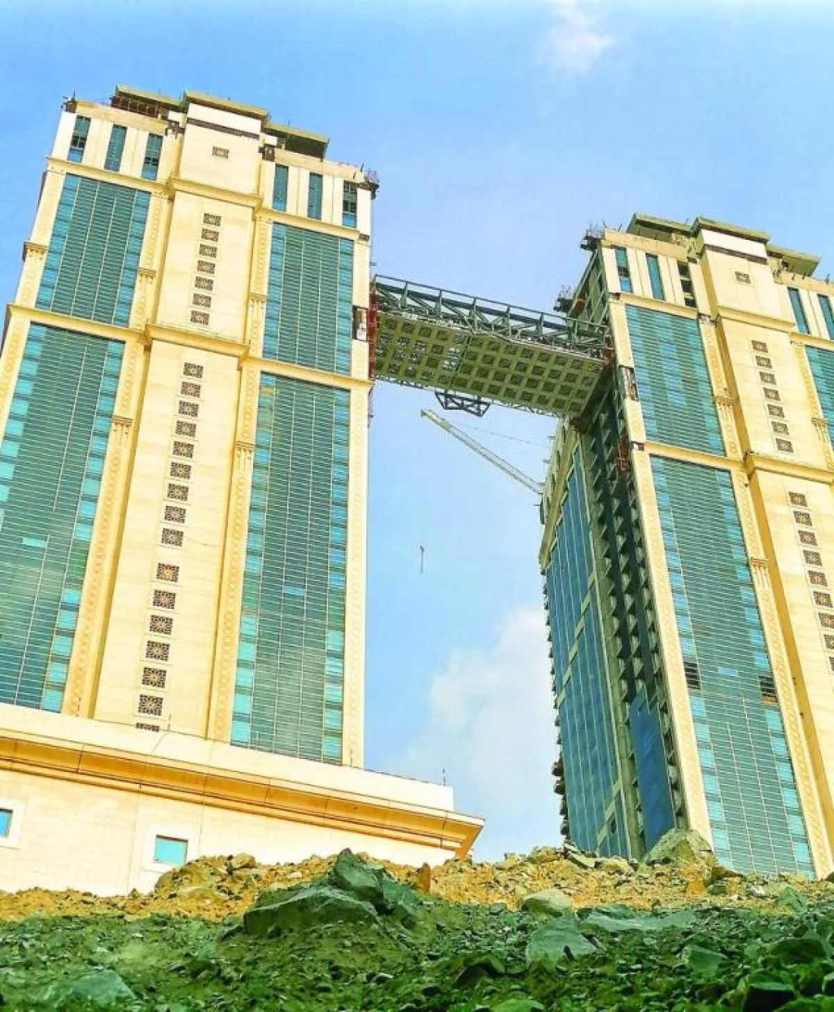 أنهى مشروع جبل عمر بمدينة "مكة" الأعمال الإنشائية المتعلقة بتركيب أعلى مصلى معلق في العالم بين البرجين التوأمين بالمشروع، حيث تم الانتهاء من الأعمال الانشائية الخاصة بتركيبه، والذي يتمتع بإطلالة بانورامية على المسجد الحرام، واتصال سمعي وبصري مع المصلين بالمسجد.