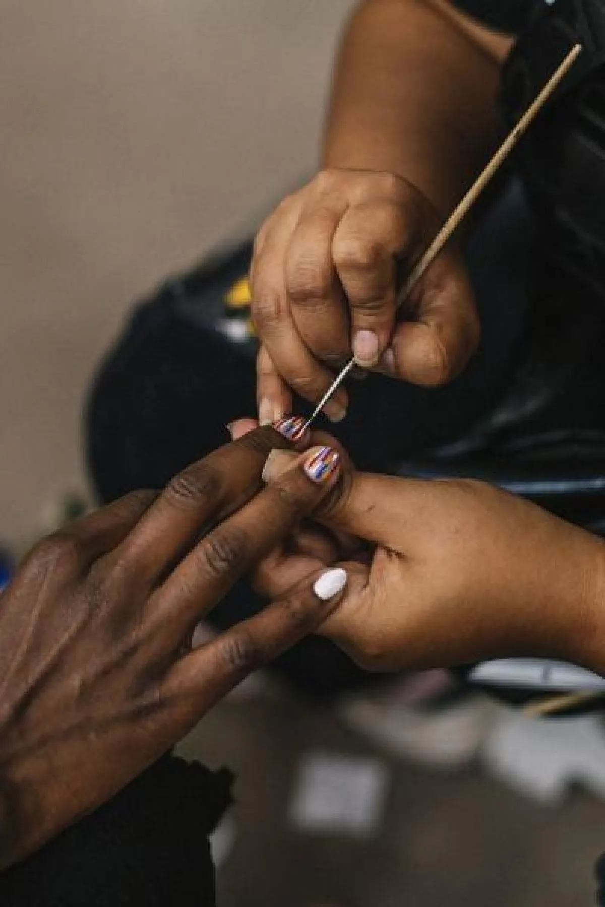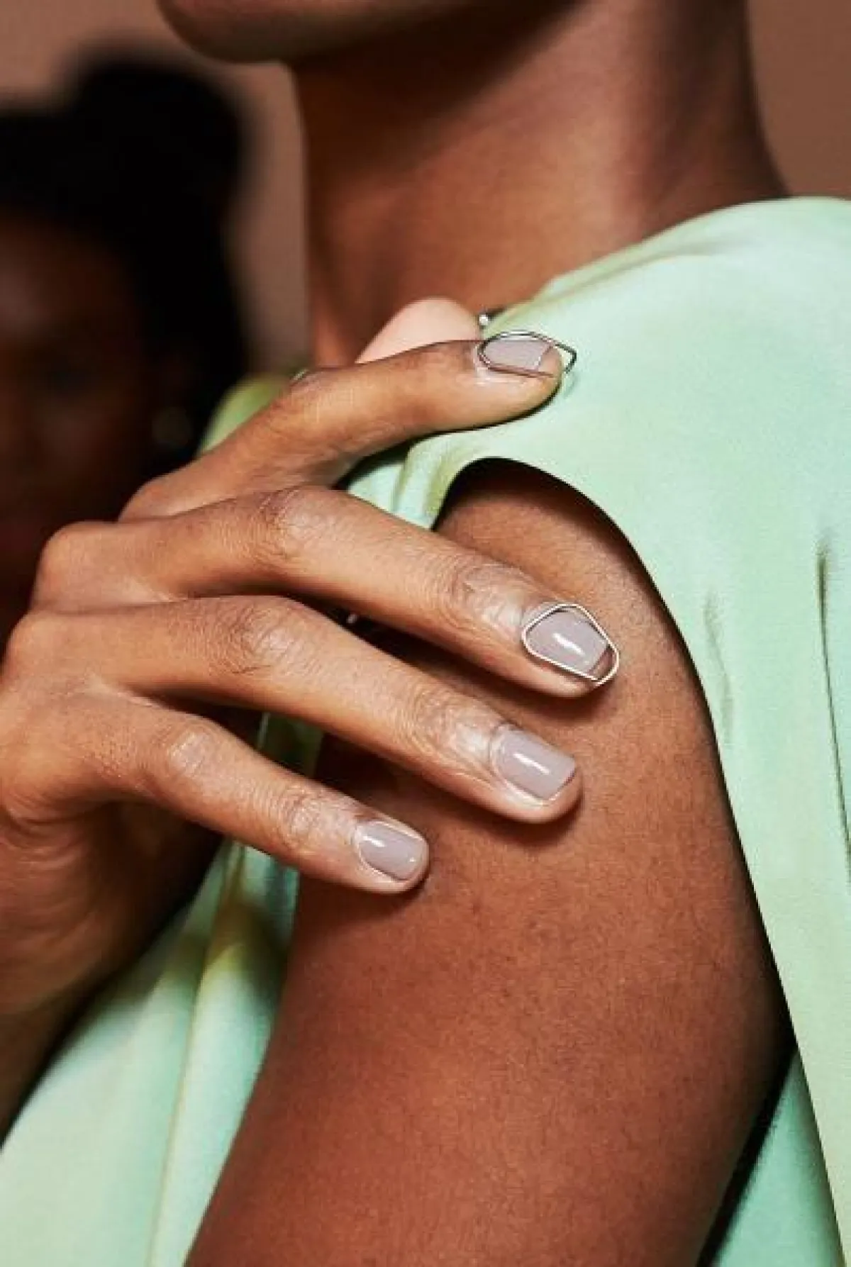 من أحدث فنون المناكير التي تناسب جميع الأظافر القصيرة، المربّعة، الطويلة واللوزيّة. يمكنكِ تقليم أسطح الأظافر بخطوط رفيعة وبألوان فاقعة كما في عروض Pyer Moss.