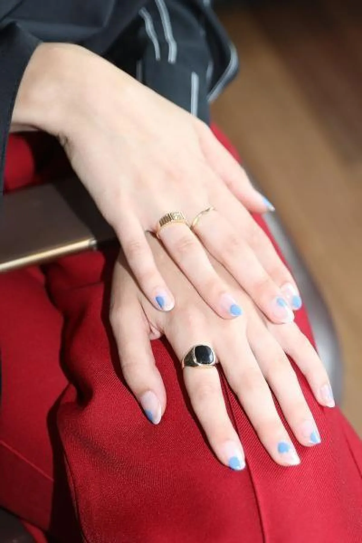 يمكنك تنميق الفرينش مناكير بنقاط البولكا الرائجة بقوّة في الموسم المقبل بأسلوب عارضات أوسكار دي لا رنتا Oscar de la Renta وعروض Zero + Maria Cornej0 باللّون الأزرق الباهت على مناكير شفّاف، وعروض Rag & Bone مع المناكير الأسود اللمّاع ونقاط البولكا باللّون الأبيض الحليبيّ.