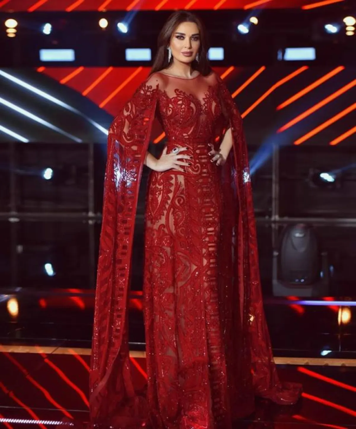 سيرين عبد النور أطلت بلوك فاخر واطلالة ساحرة، اختارت فيها فستانًا أحمر من زهير مراد Zuhair Murad من قماش التول المطرز، تصميمه لافت وأنثوي محدد الخصر مع أكمام طويلة تدلت على الأرص، وقد نسقت معه مجوهرات ماسية فاخرج.
