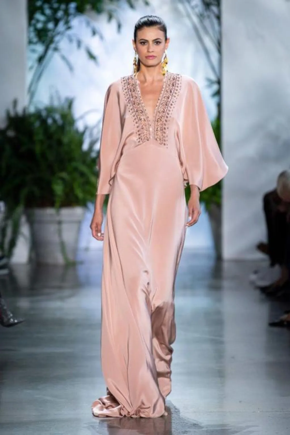 بالحديث عن مجموعات مخصصة لموسم الربيع والصيف، لا بد أن نتوقع الحضور الكبير للقفاطين المزينة بالطبعات الملونة والمتداخلة، كما في الموديلات الموقعة من أوسكار دي لا رنتا Oscar de La Renta، وكيت سبيد Kate Spade وبادجلي ميشكا Badgley Mischka، استعيني بواحد من هذه التصميمات في حال كنتِ نحيلة الجسم.