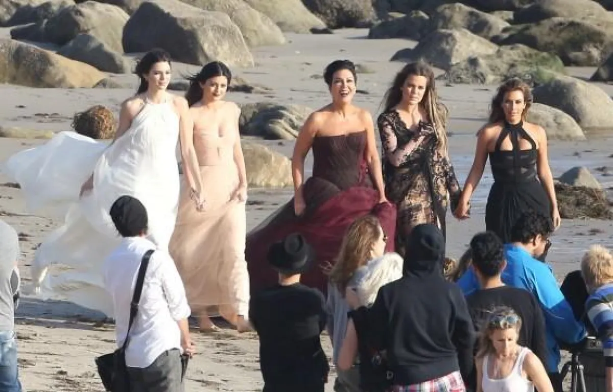 وبدت كل من Khloe kardashian ، Kylie و Kendall jenner ، والوالدة Kris jenner مشرقات بفساتينهن الطويلة على الشاطئ.