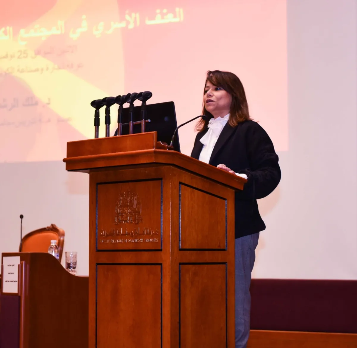 اما رئيسة قسم الدعم الاجتماعي بالتكليف في ادارة الشرطة المجتمعية بوزارة الداخلية العنود العتيبي فقد قالت في كلمتها ان حماية المرأة من العنف من المهام الرئيسة لادارة الشرطة المجتمعية مشيرة الى قرار وزارة الداخلية رقم (2411 لعام 2008) بانشاء ادارة الشرطة المجتمعية التابع لقطاع الامن العام.
