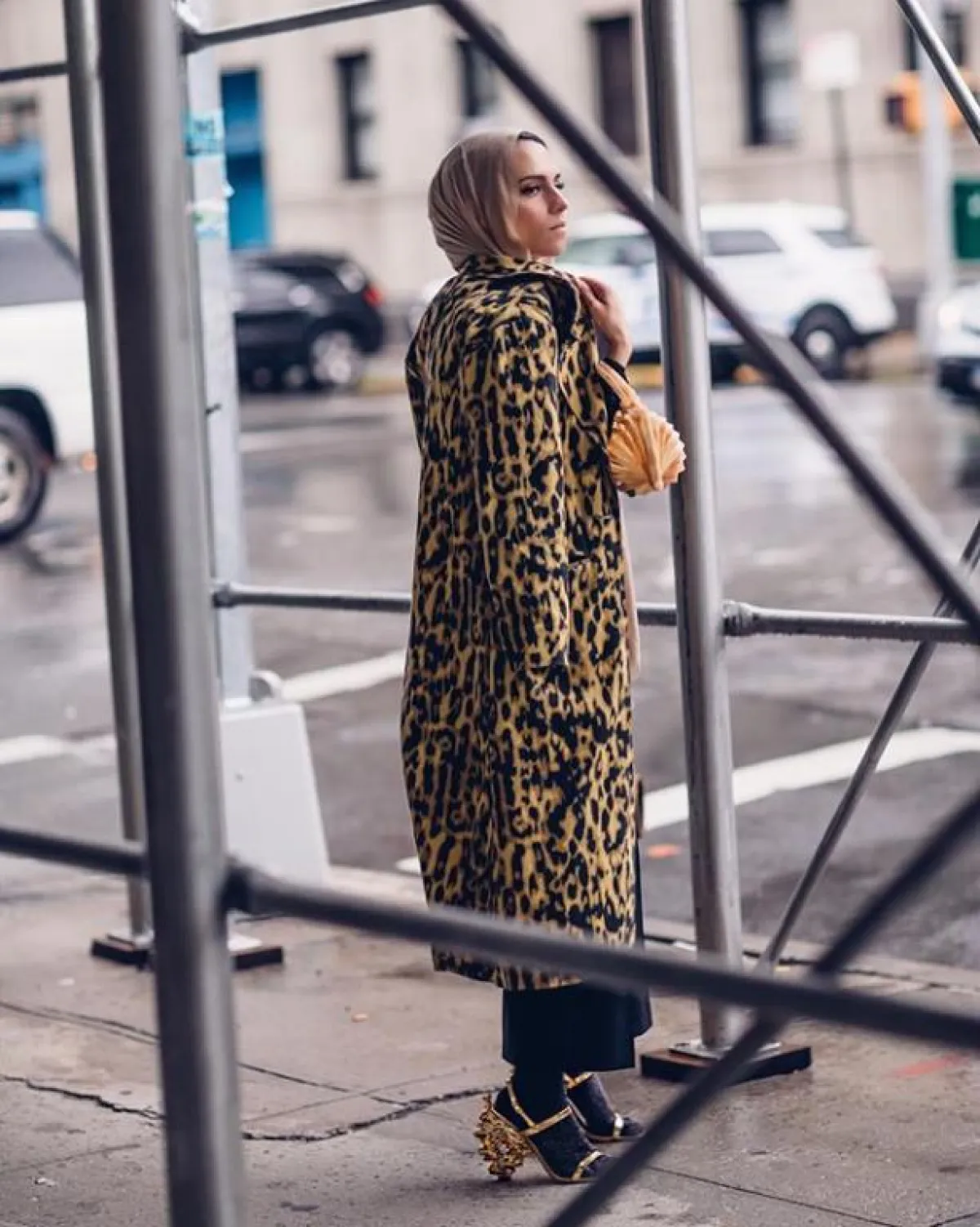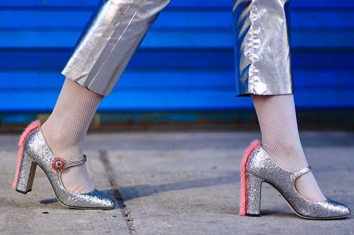 المعطف الفرو البينك مع البنطلون الميتالك لاطلالة أنثوية مبهجة
