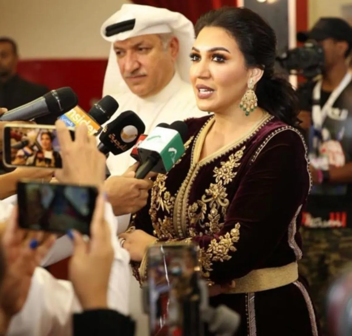 وتميزت الفنانة أسماء المنور بإطلالة محتشمة بالقفطان المغربي الذي صُمم بنقوشات ذهبية في الجزء العلوي وخطوط ذهبية في الأسفل، إضافةً إلى الحزام الذهبي الذي أضفى الكثير من الجمال على إطلالتها وكان القفطان من توقيع دار رافينيتي للأزياء، وزينت أسماء المنور إطلالتها بمجوهرات من دار رافينيتي أيضًا، وكانت عبارة عن اقراط ذهبية ضخمة وعدة خواتم مختلفة.