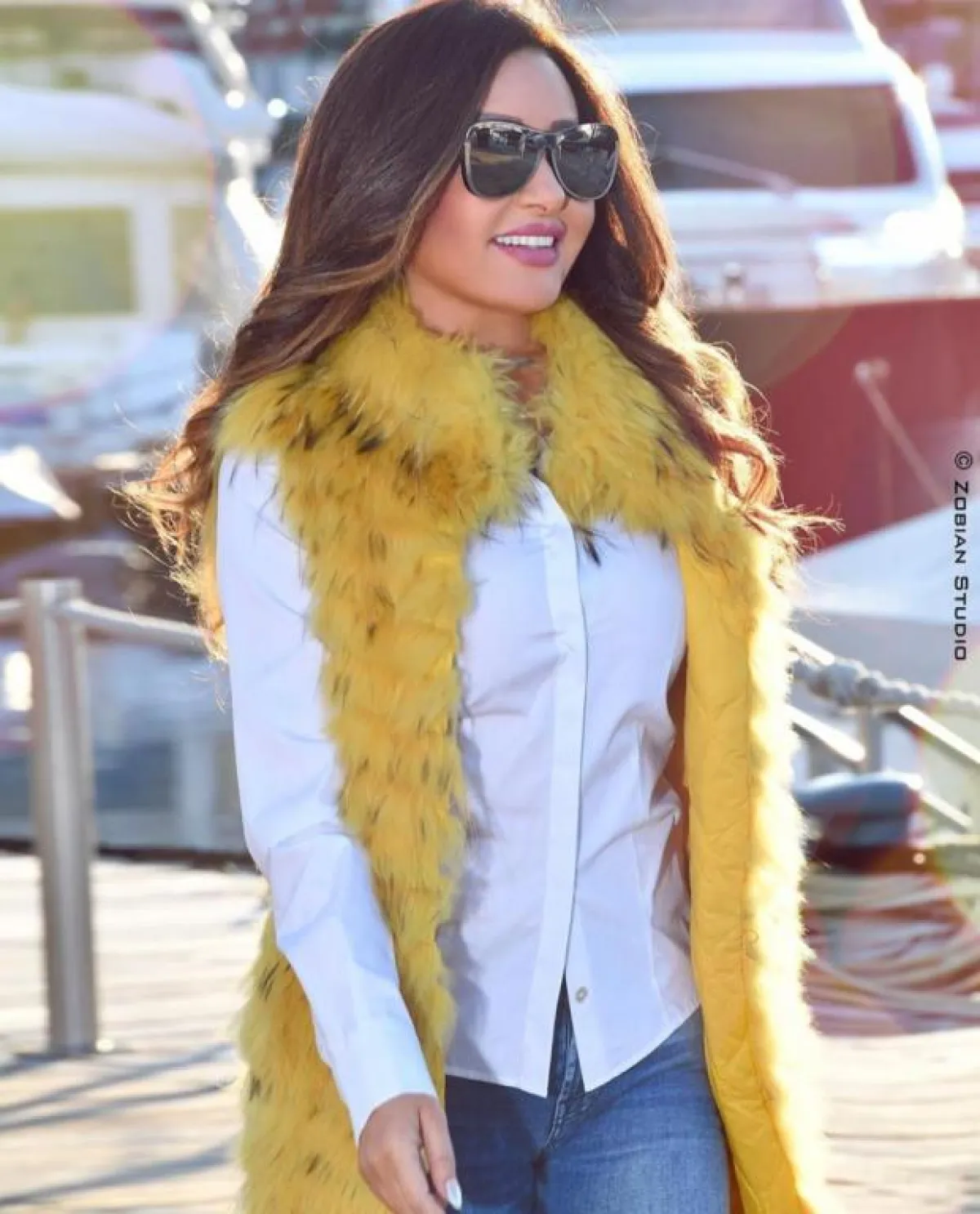 ونسقت في إطلالة محايدة بنطالًا من الجينز وبلوزة بيضاء ومعطفًا طويلًا بنيًّا مع حقيبة سماوية وحذاء رياضي أخضر وقبعة قش، وتجملت بلوك عصري مناسب للمناسبات الضخمة ببنطال وقميص باللون الذهبي المزين بفصوص صغيرة، وتأنقت لمظهر عملي للمناسبات ببنطال فضي وبلوزة بيضاء وبليزر فوشيا مزين بفصوص، واختارت إطلالة عملية بقميص أبيض وبنطال من الجينز ومعطف أصفر من الفرو، وتميزت بفستان أزرق طويل ومنفوش مزين من الأعلى بعدة خرزات زرقاء يناسب المناسبات الضخمة.