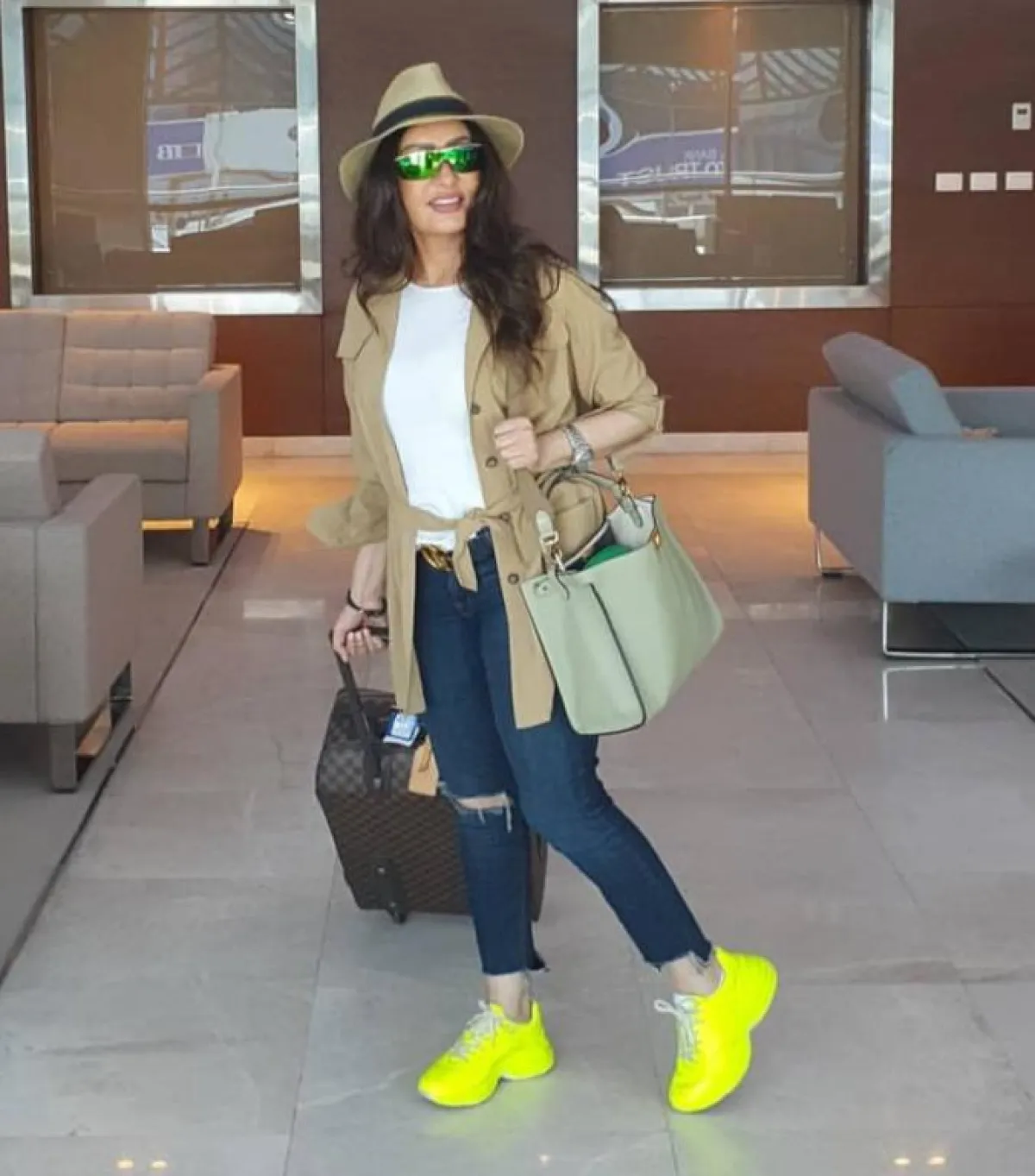 ارتدت لطيفة قميصًا أصفر وتيشيرت وبنطالًا باللون الأسود لمظهر بسيط مناسب للسفر، وظهرت بقميص أبيض مزيَّن بأكمام شفافة وتنورة سوداء لإطلالة عملية أكملتها بحزام عريض بفصوص ذهبية للوك أنيق، وتألقت لمظهر شبابي أنيق بمعطف زيتي طويل وبنطال أسود، وأكملته بحقيبة ظهر وحذاء رياضي، وتزينت في مظهر عملي بسيط ببنطال وبلوزة باللون الأبيض وجاكيت أزرق مزيَّن بخطوط بيضاء، وأطلَّت في لوك أنيق ببنطال جينز وبلوزة سوداء بأكمام طويلة مع قبعة من القش.