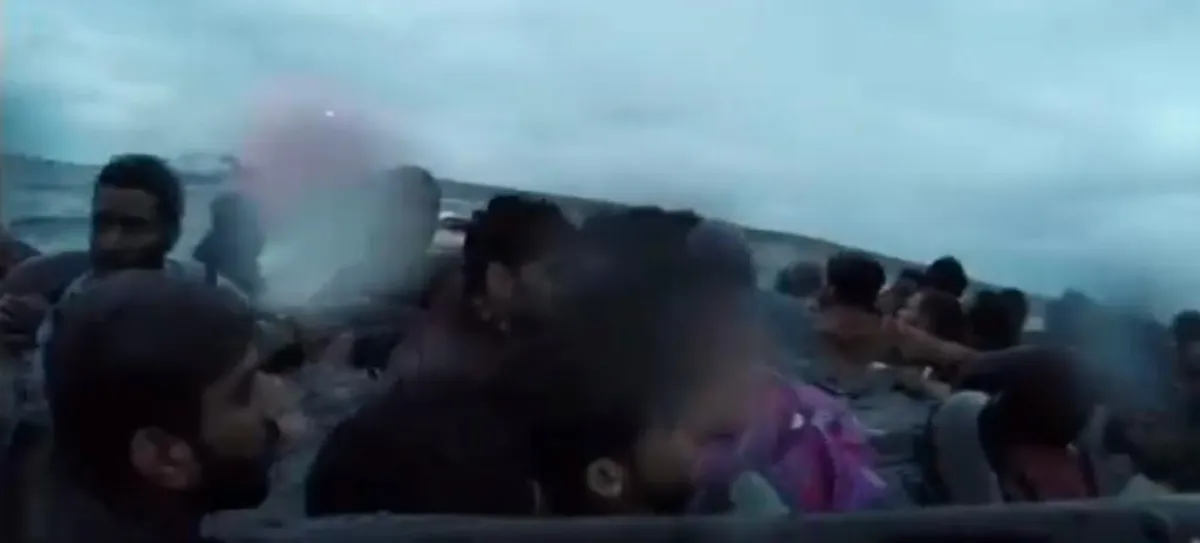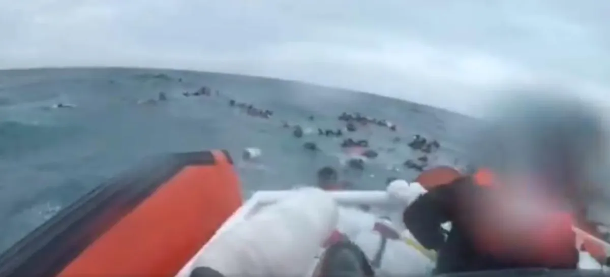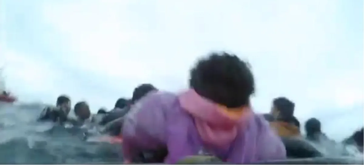 لحظة إمساك المنقذ للطفل ومحاولة إيصاله للقارب