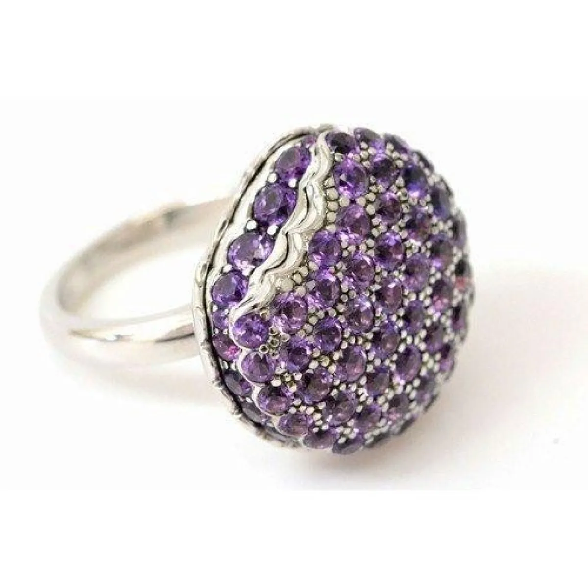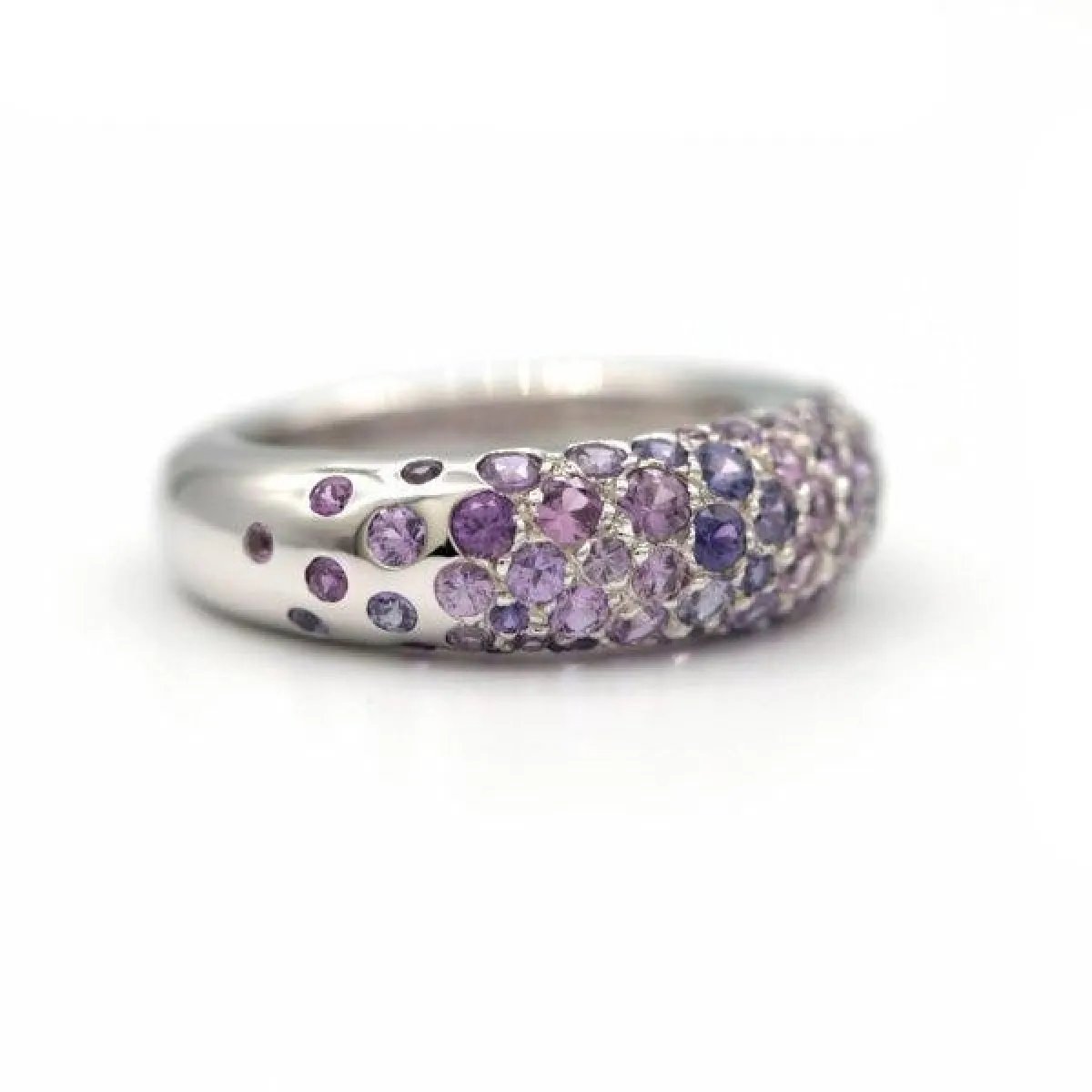ويعد اللون الأرجواني من أبرز ألوان خواتم الخطوبة الرائجة، وهو لون جذاب وراقي ويتناغم مع الذهب الأبيض والوردي.