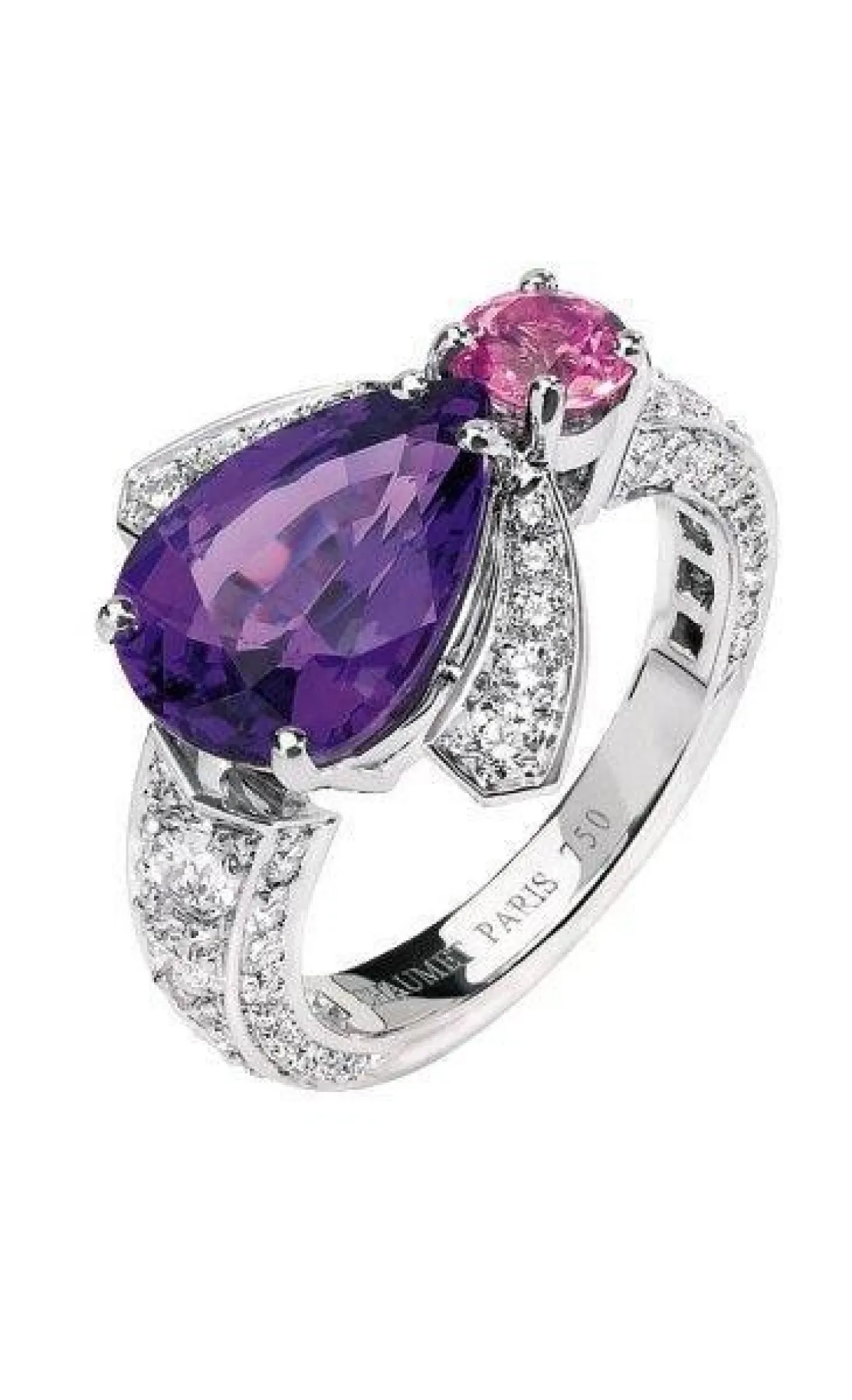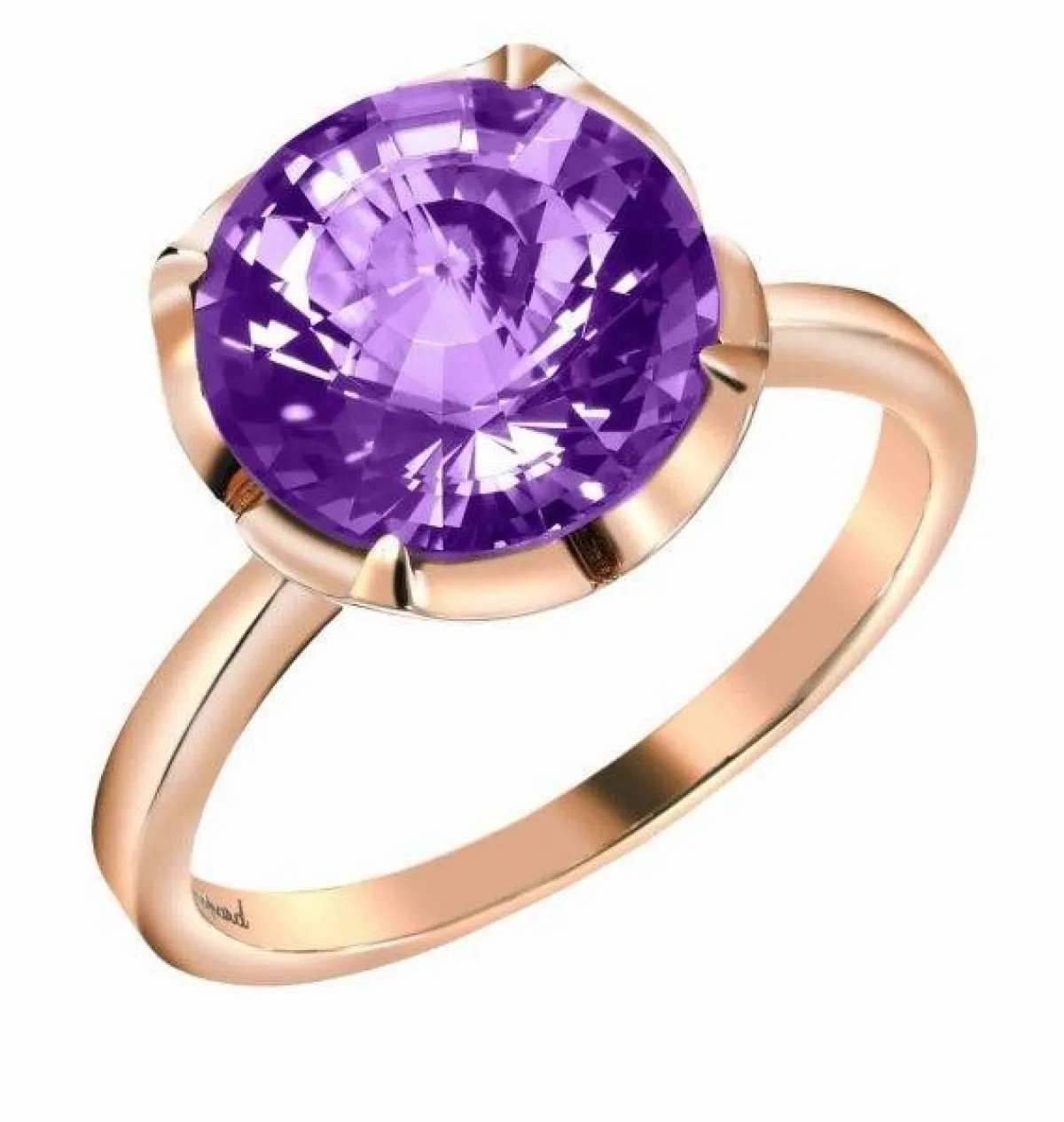 قدمت ماركة بوشيرون Boucheron خواتم ذهب أبيض مرصعة بالألماس مع الحجر الأرجواني وبتصاميم دائرية.