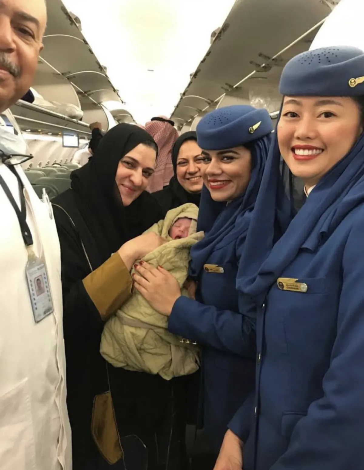 وأضافت "تعاون الجميع معنا على الرغم من ارتباكبعضهم في البداية، حيث عملوا على تهيئة مكانٍمناسب لتضع السيدة مولودها، كما سادت حالةٌ من الصمت التام في الطائرة حتى قدوم الوليدلتتعالى أصوات الركاب فرحاً بالخبر السار، وأُرجع نجاح العملية إلى فضل الله عز وجل أولاً، ثم دعواتالركاب، ورض