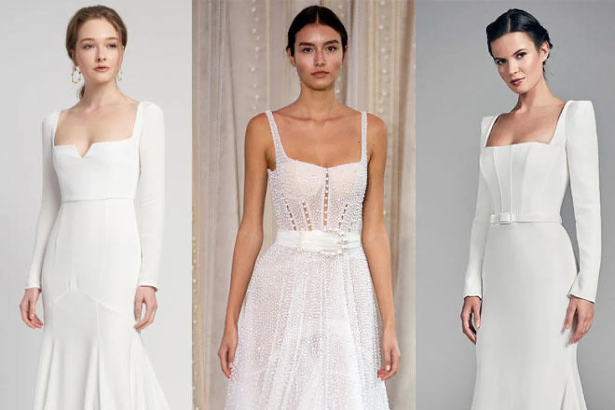 طالعي أجمل موديلات فساتين زفاف بياقة مربعة 2020، فهي صيحة رائجة وغير تقليدية للعروس.