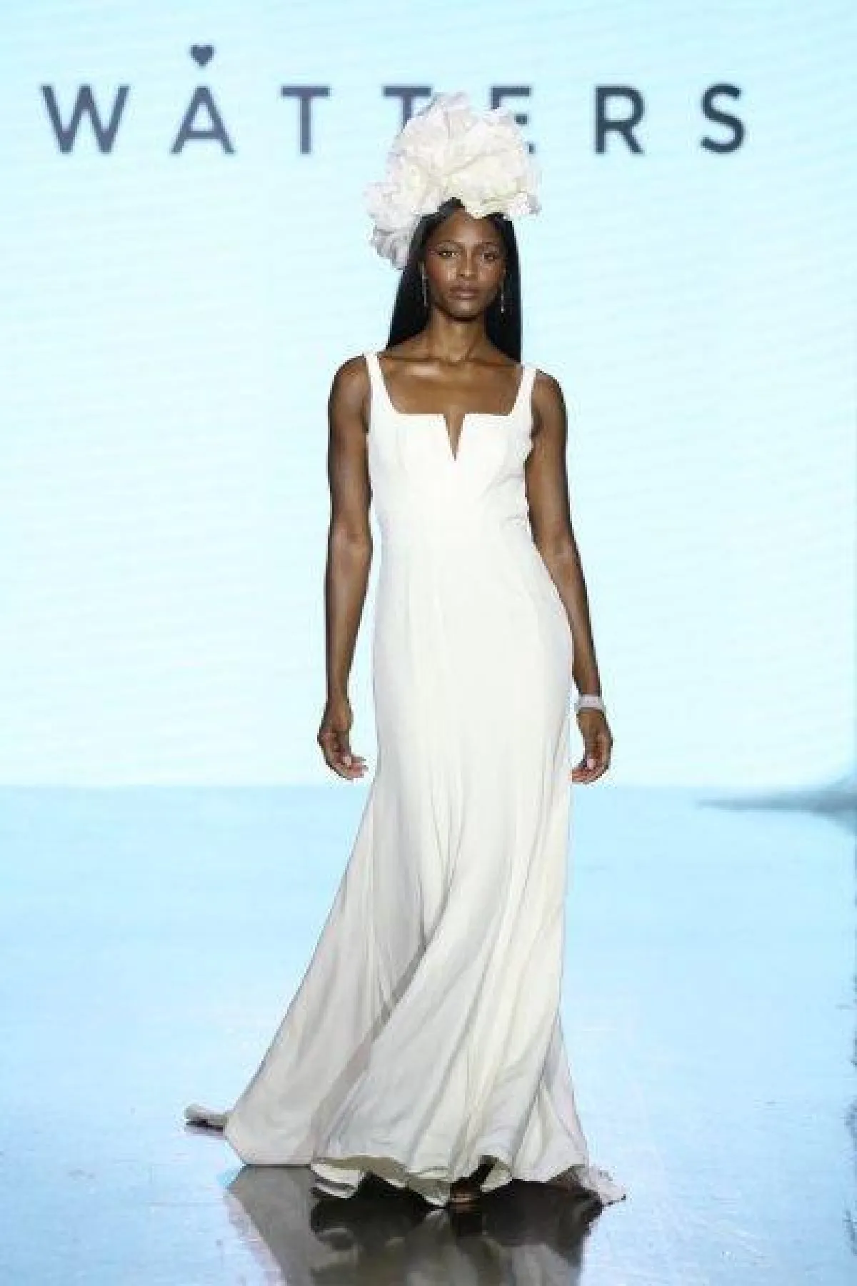 أعجبنا فستان زفاف واترز Watters بالقبّة المربعة والحمّالات مع قصّة ضيقة تتسع من أسفل لإطلالة عصرية يوم العرس.