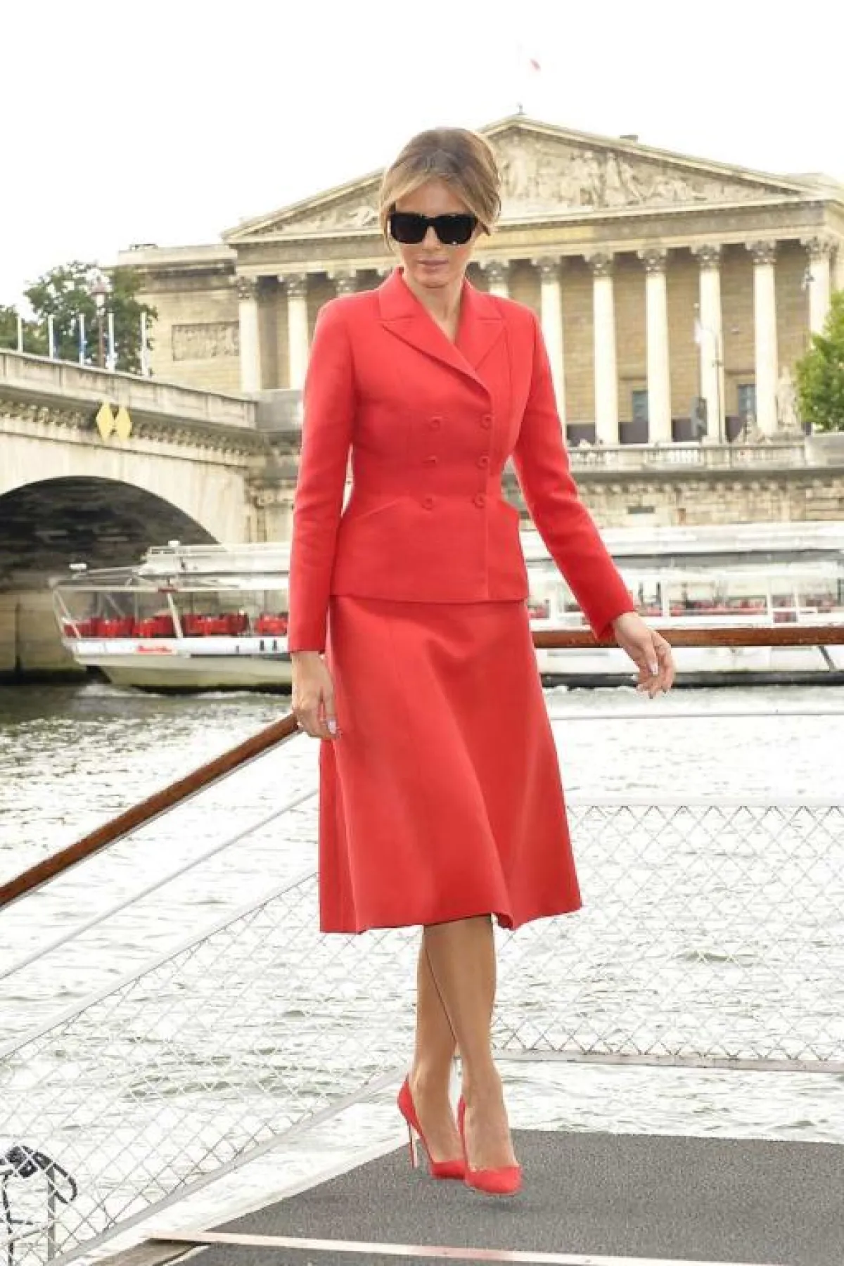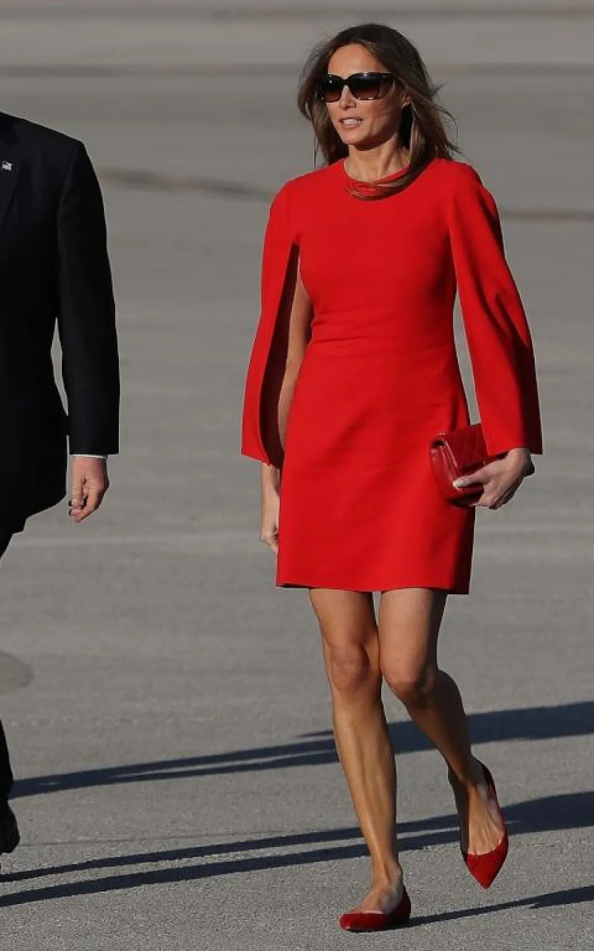 اعتمدت ميلانيا ترامب الإطلالات احادية اللون من قبل عدة مرات، وهو ما يعكس أنها حققت لها الأناقة. ذهبت من قبل إلى إطلالة قريبة من تلك التي ذكرنا تفاصيلها، حيث اعتمدت معطفاً بتصميم مستقيم باللون الجملي مع حذاء البوت باللون نفسه، لتظهر بنفس النمط تقريباً، ورغم تكراره إلا أنها بدت متفردة في كل مرة.